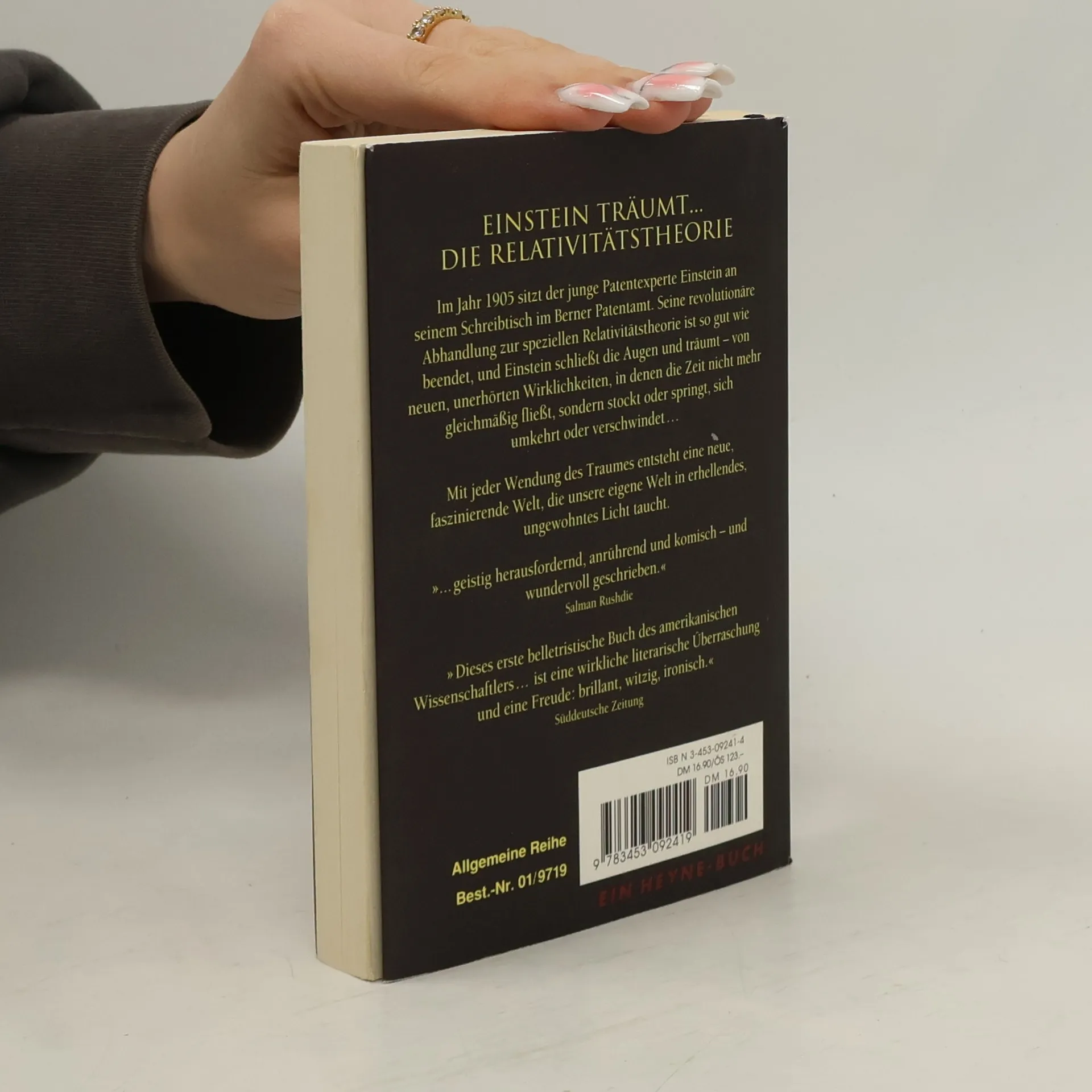 An einem Aprilmorgen des Jahres 1905 sitzt der junge Albert Einstein früh um sechs Uhr an seinem Schreibtisch im Berner Patentamt. Schwache Geräusche aus der Stadt dringen an sein Ohr. Seine Haare sind zerzaust, die Hosen zu weit. In der Hand hält er zwanzig Seiten mit seiner neuen Theorie der Zeit, der speziellen Relativitätstheorie. Tag und Nacht hat er daran gearbeitet, nun ist sie vollendet. Einstein ist erschöpft. Immer wieder fallen ihm die Augen zu, der Kopf sinkt auf die Tischplatte - und er beginnt zu träumen: von Welten, in denen die Zeit still steht, langsamer fließt, springt oder rückwärts läuft, von Wirklichkeiten, in denen sie plötzlich von neuem beginnt oder gar verschwindet. Auf dreißig Traumreisen durch die Zeit können wir das Genie Einstein begleiten, jede von ihnen der geistreiche Entwurf einer faszinierend anderen Welt. Und Alan Lightman ist mit seinem einzigartigen Roman selbst ein kleiner Geniestreich gelungen: In seiner spielerischen Leichtigkeit der überbordenden Phantasie eines Italo Calvino nahe, kann er doch mühelos einem Stephen Hawking das Wasser reichen.
