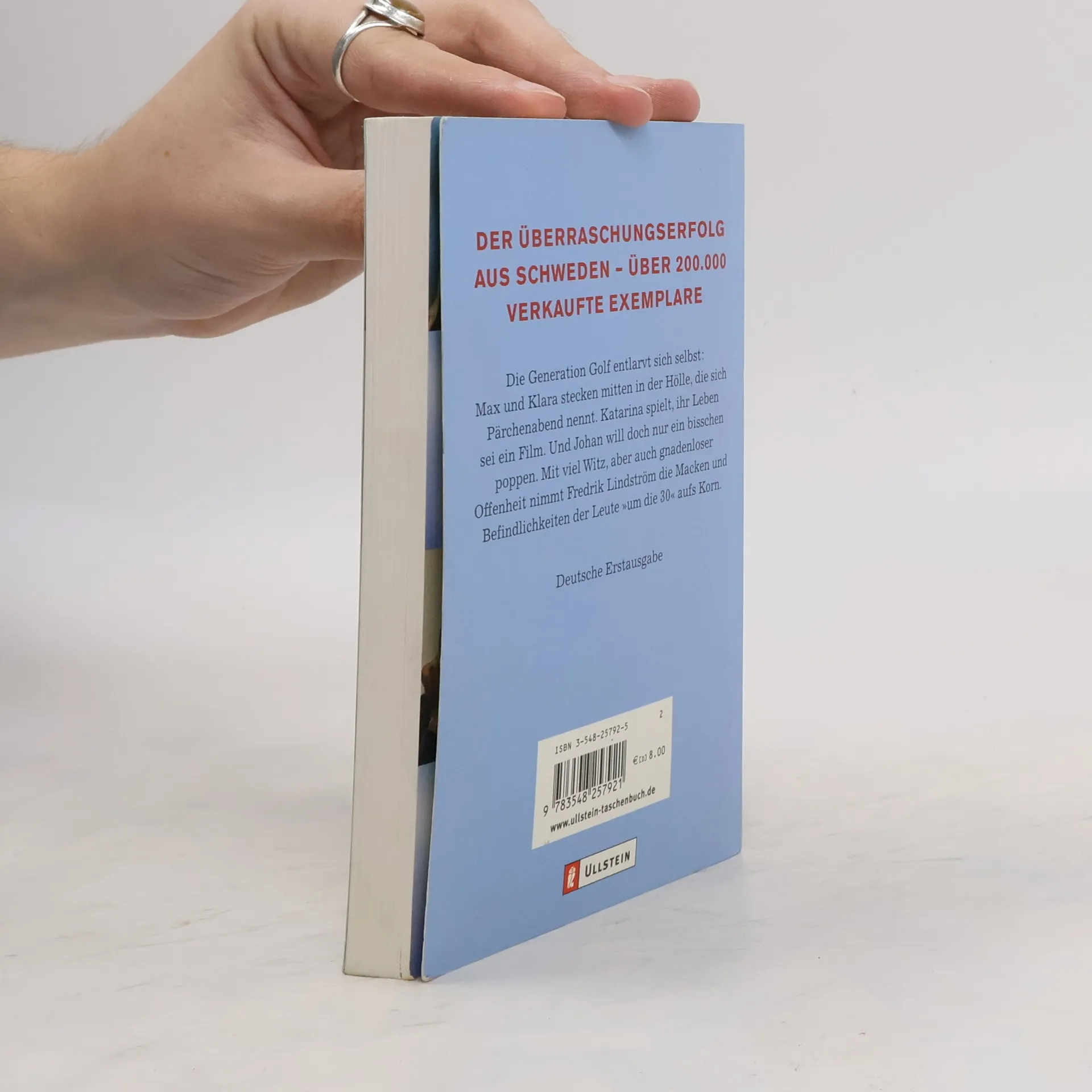 Die Generation Golf entlarvt sich selbst: Max und Klara stecken mitten in der Hölle, die sich Pärchenabend nennt. Katarina spielt, ihr Leben sei ein Film. Und Johan will doch nur ein bisschen poppen. Mit viel Witz, aber auch gnadenloser Offenheit nimmt Fredrik Lindström die Macken und Befindlichkeiten der Leute »um die 30« aufs Korn.