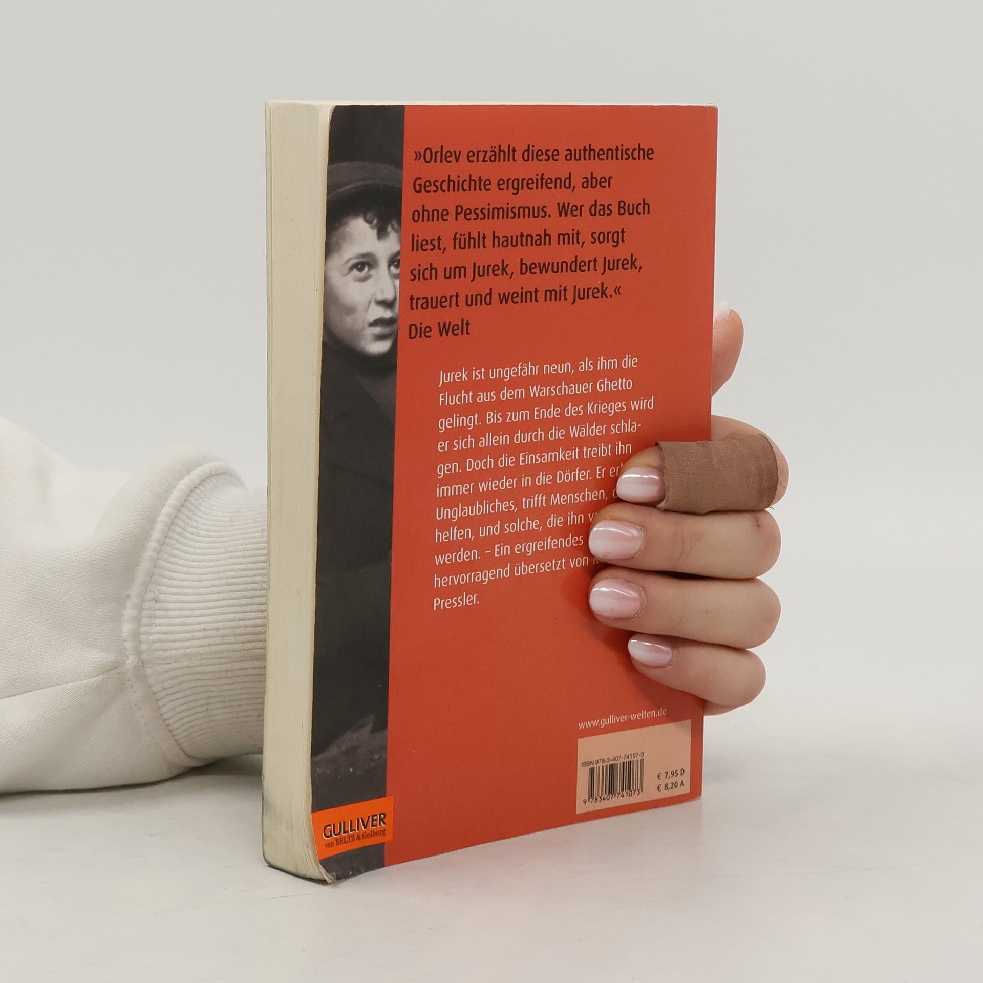 „Wie der kleine Jurek durch den Krieg kommt, das ist so ungeheuerlich wie im Simplizissimus: Er hat ein wenig Glück in einer grausamen Welt. Seine Flucht gibt Menschen Gelegenheit sich gut oder böse zu verhalten. Eine Lehre, herzerweichend.“ BuchMarkt Jurek ist ungefähr neun, als ihm die Flucht aus dem Warschauer Ghetto gelingt und er sich allein durch die Wälder schlagen muss, bis zum Ende des Krieges. Er lernt, wie man auf Bäumen schläft und mit der Schleuder Eichhörnchen erlegt. Doch die Einsamkeit treibt ihn immer wieder in die Dörfer. Dort trifft Jurek Menschen, die ihm helfen, und solche, die ihn verraten werden. Ein ergreifendes Buch, das auf einer authentischen Geschichte basiert.