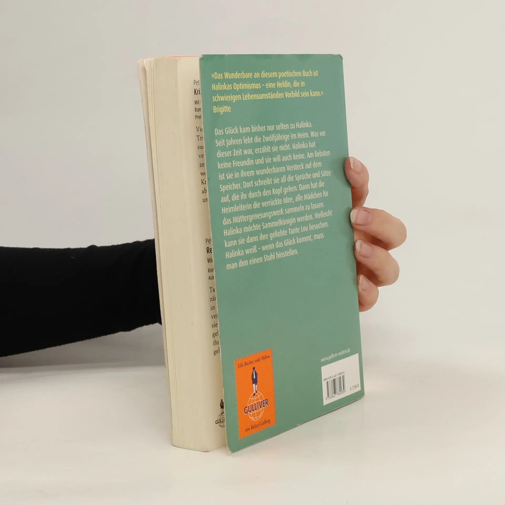 „Die Tür nicht zumachen, sondern offen halten für das kleine Glück.“ Mirjam Pressler Das Glück kam bisher nur selten zu Halinka. Halinka ist zwölf und lebt seit Jahren im Heim. Was vor dieser Zeit war, erzählt sie nicht. Halinka hat keine Freundin und will auch keine. Am liebsten ist sie allein in ihrem wunderbaren Versteck auf dem Speicher. Dort schreibt sie all die Sprüche und Sätze auf, die ihr durch den Kopf gehen. Manchmal lässt sie sich mit Huckleberry Finn auf einem Floß den Mississippi hinuntertreiben. Dann hat Fräulein Urban, die Heimleiterin, die verrückte Idee, alle Mädchen für das Müttergenesungswerk sammeln zu lassen. Halinka möchte unbedingt Sammelkönigin werden. Vielleicht kann sie dann wieder ihre geliebte Tante Lou besuchen. Halinka weiß - wenn das Glück kommt, dann muss man ihm einen Stuhl hinstellen. Und darauf wartet sie.