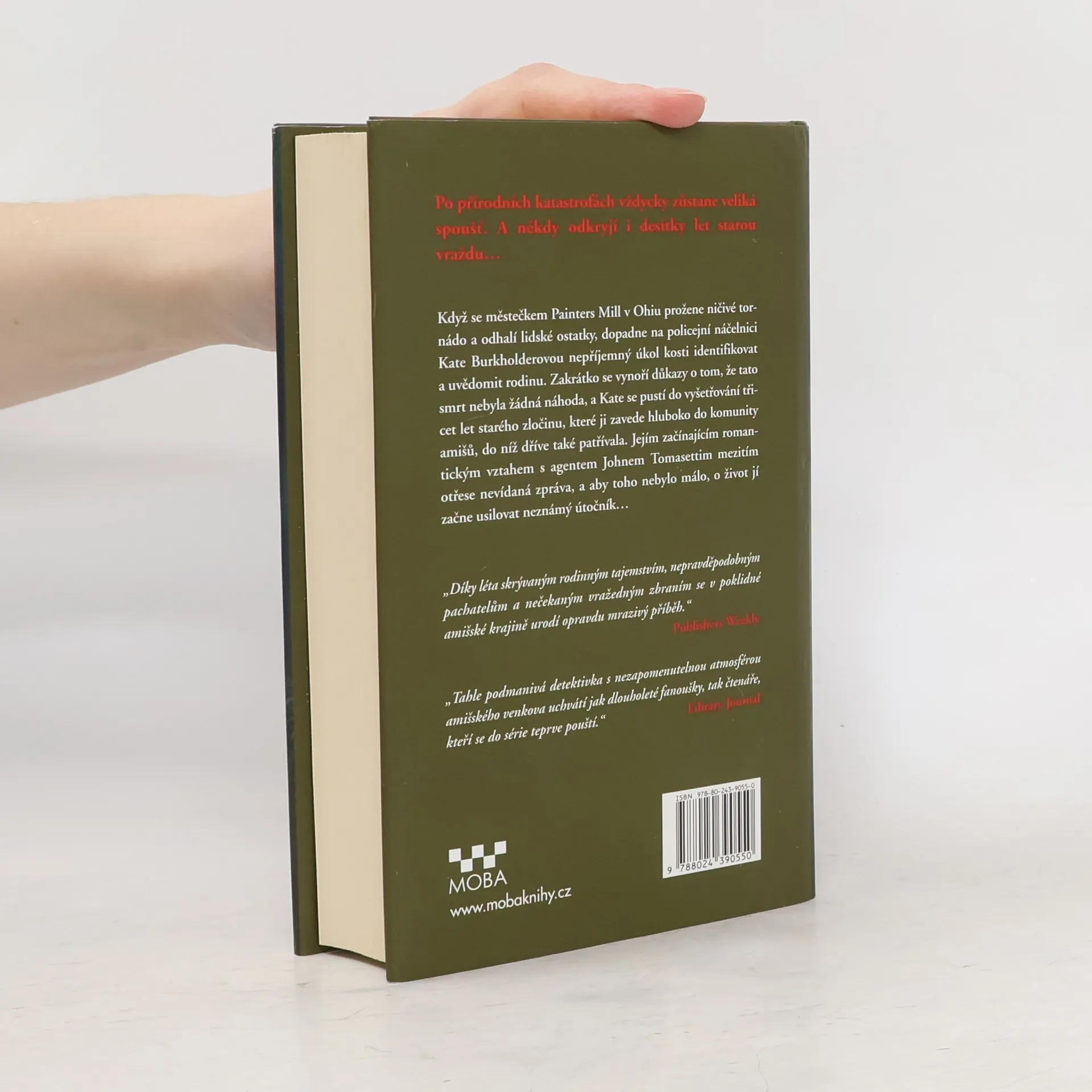 Na městečko Panters Mill v Ohiu, kde žije početná komunita amišů, udeří ničivé tornádo. Při odklízení následků je v pytli nalezena lidská kostra. Bez končetin. Něco je okousalo. Kate Burkholderová se pouští do vyšetřování třicet let starého zločinu či zamaskované nehody. A pátrání ji znovu přivádí mezi amiše, kteří bedlivě střeží své soukromí. Odhalení totožnosti oběti spouští další lavinu událostí, na Kate má navíc spadeno neznámý vetřelec. A aby toho nebylo málo, Kate zjišťuje, že je těhotná. Na to ani ona, ani John nebyli připraveni…