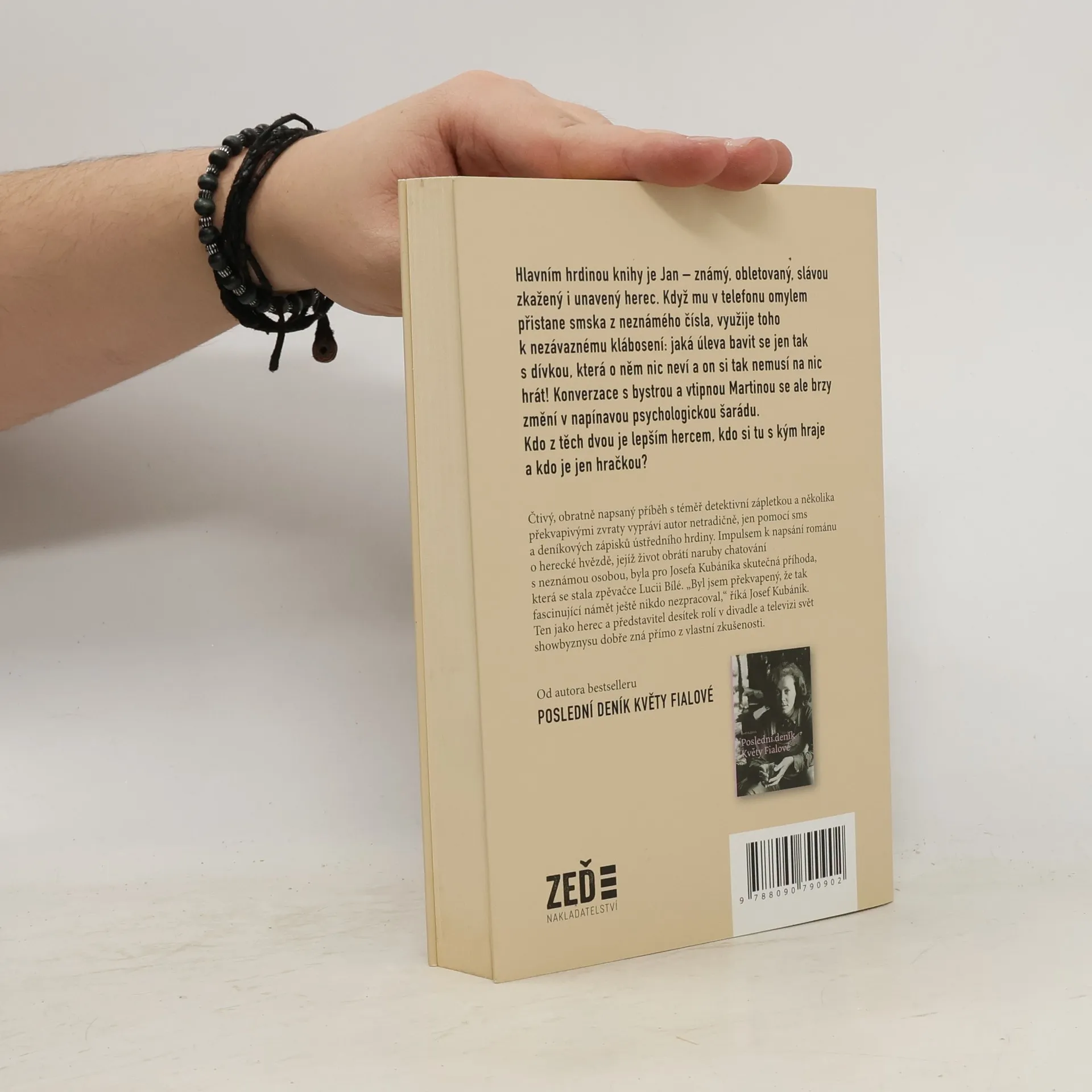 Skutečný příběh, který se může stát i vám... Hlavním hrdinou knihy je Jan – známý, obletovaný, slávou zkažený i unavený herec. Když mu v telefonu omylem přistane smska z neznámého čísla, využije toho k nezávaznému klábosení: jaká úleva bavit se jen tak s dívkou, která o něm nic neví a on si tak nemusí na nic hrát! Konverzace s bystrou a vtipnou Martinou se ale brzy změní v napínavou psychologickou šarádu. Kdo z těch dvou je lepším hercem, kdo si tu s kým hraje a kdo je jen hračkou? Čtivý, obratně napsaný příběh s téměř detektivní zápletkou a několika překvapivými zvraty vypráví autor netradičně, jen pomocí sms a deníkových zápisků ústředního hrdiny. Impulsem k napsání románu o herecké hvězdě, jejíž život obrátí naruby chatování s neznámou osobou, byla pro Josefa Kubáníka skutečná příhoda, která se stala zpěvačce Lucii Bílé. „Byl jsem překvapený, že tak fascinující námět ještě nikdo nezpracoval,” říká Josef Kubáník, který loni napsal bestseller Poslední deník Květy Fialové. Jako herec a představitel desítek rolí v divadle a televizi svět showbyznysu dobře zná přímo z vlastní zkušenosti.