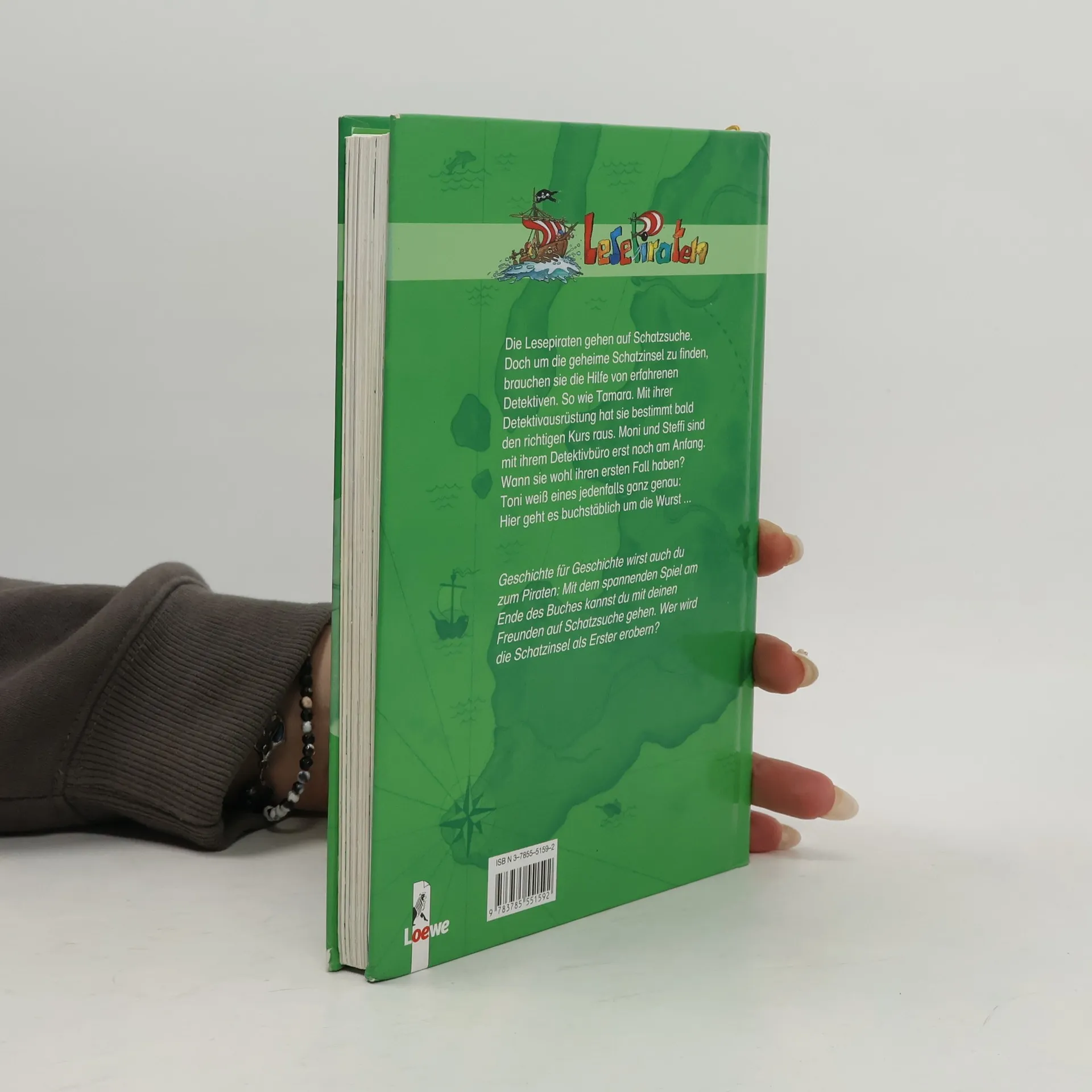 Die Lesepiraten gehen auf Schatzsuche. Doch um die geheime Schatzinsel zu finden, brauchen sie die Hilfe von erfahrenen Detektiven. So wie Tamara. Mit ihrer Detektivausrüstung hat sie bestimmt bald den richtigen Kurs raus. Moni und Steffi sind mit ihrem Detektivausrüstung hat sie bestimmt bald den richtigen Kurs raus. Moni und Steffi sind mit ihrem Detektivbüro erst noch am Anfang. Wann sie wohl ihren ersten Fall haben? Toni weiß eines jedenfalls ganz genau: Hier geht es buchstäblich um die Wurst...Geschichte um Geschichte wirst auch du zum Piraten: Mit dem spannenden Spiel am Ende des Buches kannst du mit deinen Freunden auf Schatzsuche gehen. Wer wird die Schatzinsel als Erster erobern?