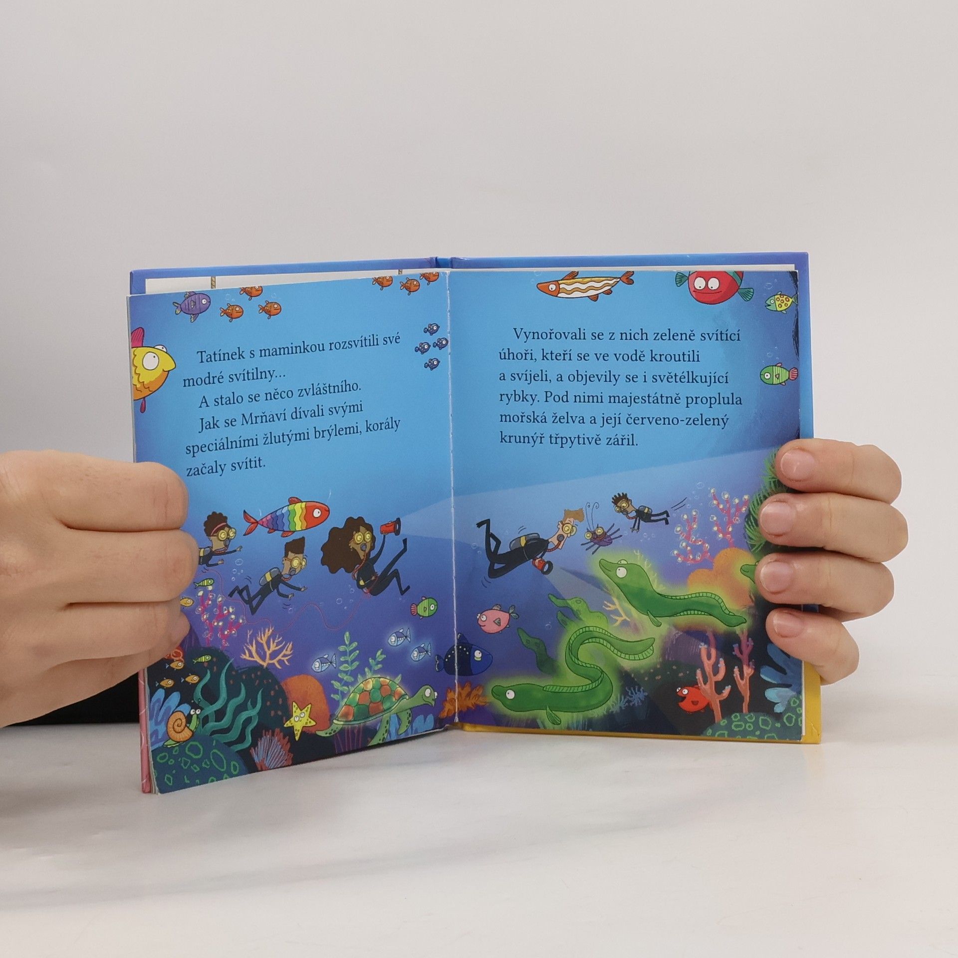 Mrňaví detektivové jsou hodně maličcí a hodně zvědaví. A proto bydlí v knihovničce – neboť i ti nejmenší človíčkové mohou najít odpovědi na velké otázky, když se ponoří do knížek. A to je přesně to, co mrňaví detektivové umí nejlépe. Tentokrát v knize hledali odpověď na otázku, jestli ryby svítí.
