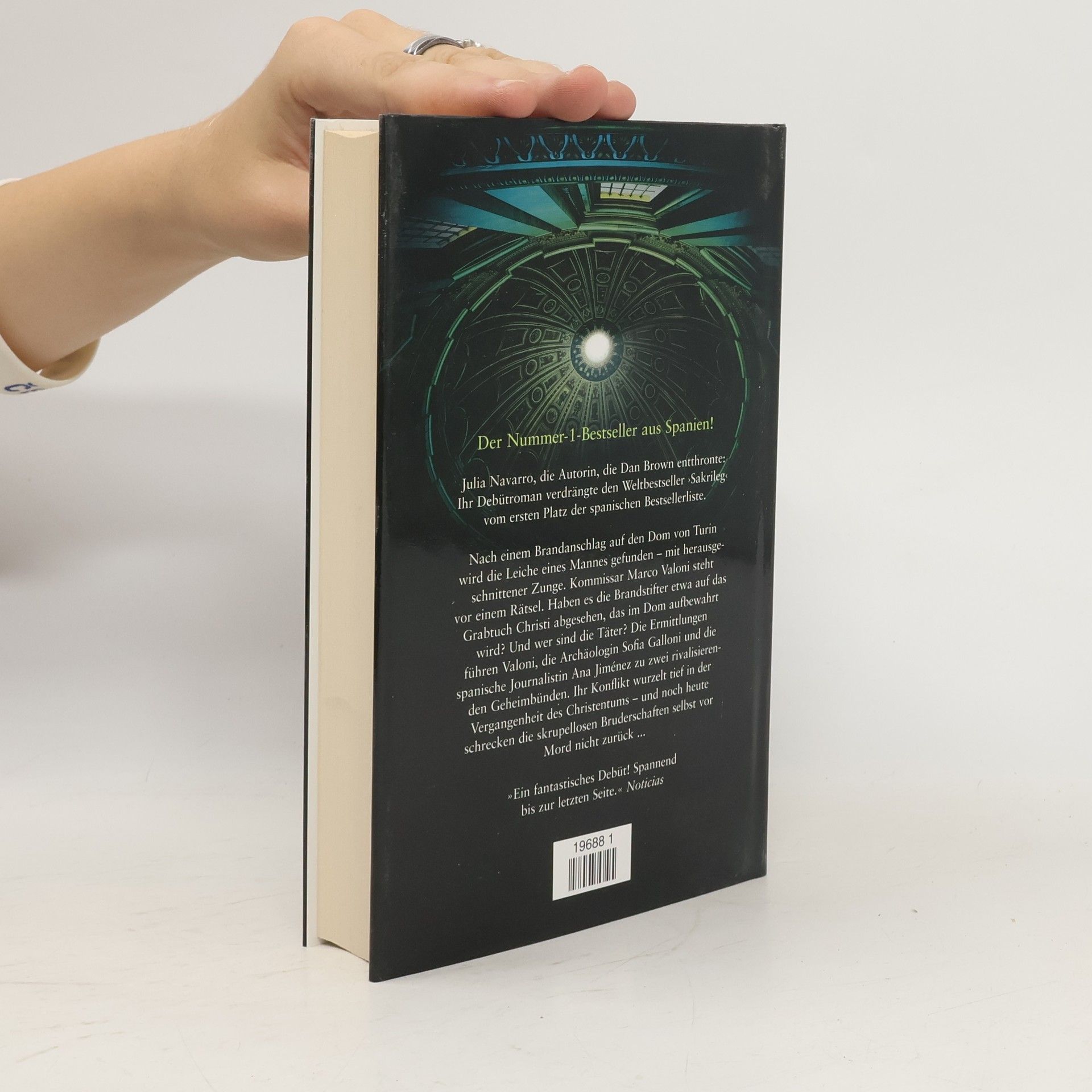 Zwei skrupellose Geheimbünde wollen das heilige Grabtuch Jesu an sich reißen: ein blutiger Konflikt, der tief in der Vergangenheit des Christentums wurzelt. Sonntagsjournal „Die Autorin geht bei der Frage, woher denn das Grabtuch stammt, geradzu detektivisch vor, vermischt Realität und Fiktion derart gekonnt, daß ihre Darstellung sich wie eine Tatsachenversion ausnimmt.“ Westfälische Rundschau „Ein spannendes, packendes und lehrreiches Lesevergnügen.“ Bild am Sonntag