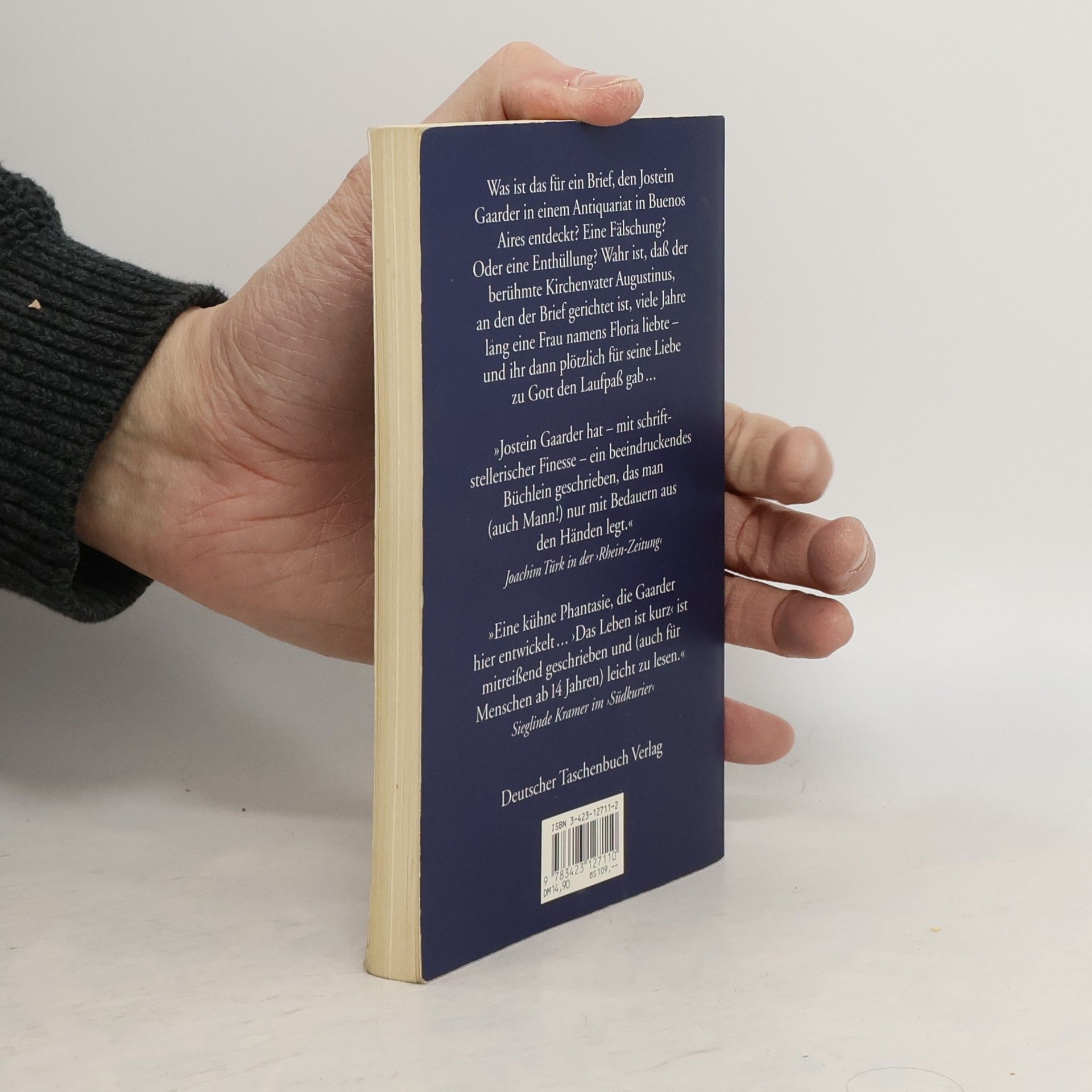 Provokante Argumentationen gegen die kirchliche Moral Was ist das für ein Brief, den Jostein Gaarder in einem Antiquariat in Buenos Aires entdeckt? Eine Fälschung? Oder eine Enthüllung? Wahr ist, daß der berühmte Kirchenvater Augustinus, an den der Brief gerichtet ist, viele Jahre lang eine Frau namens Floria liebte, einen Sohn mit ihr hatte und ihr dann plötzlich für seine Liebe zu Gott den Laufpaß gab. Wie mußte sich Floria da fühlen? Das erzählt der aufgefundene Brief, der ihren Namen als Absender trägt. Floria fragt Augustinus: Warum ist alles, was zwischen uns war, plötzlich Sünde in deinen Augen? Warum ist die Frau diejenige, die verführt, und der Mann der Verführte? Warum schließt deine Liebe zu Gott jede Leidenschaft für eine Frau aus? In ihrer provokanten Argumentation rüttelt Floria an einer Moral, mit der sich die Männer bis heute – nicht nur in der Kirche – über die Frauen erheben.