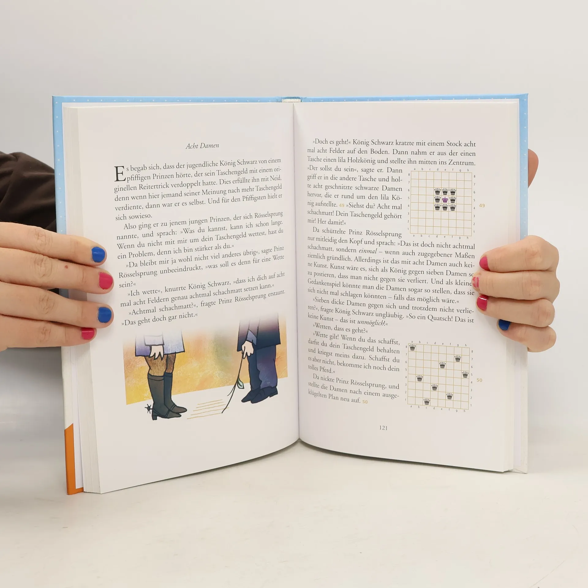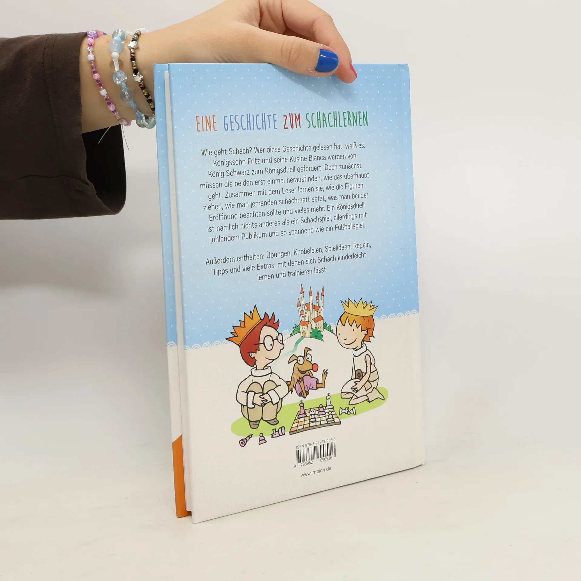 Eine Geschichte zum Schachlernen Wie geht Schach? Wer diese Geschichte gelesen hat, weiß es. Königssohn Fritz und seine Kusine Bianca werden von König Schwarz zum Königsduell gefordert. Doch zunächst müssen die beiden erst einmal herausfinden, wie das überhaupt geht. Zusammen mit dem Leser lernen sie, wie die Figuren ziehen, wie man jemanden schachmatt setzt, was man bei der Eröffnung beachten sollte und vieles mehr. Ein Königsduell ist nämlich nichts anderes als ein Schachspiel, allerdings mit johlendem Publikum und so spannend wie ein Fußballspiel. Außerdem enthalten: Übungen, Knobeleien, Spielideen, Regeln, Tipps und viele Extras, mit denen sich Schach kinderleicht lernen und trainieren lässt.