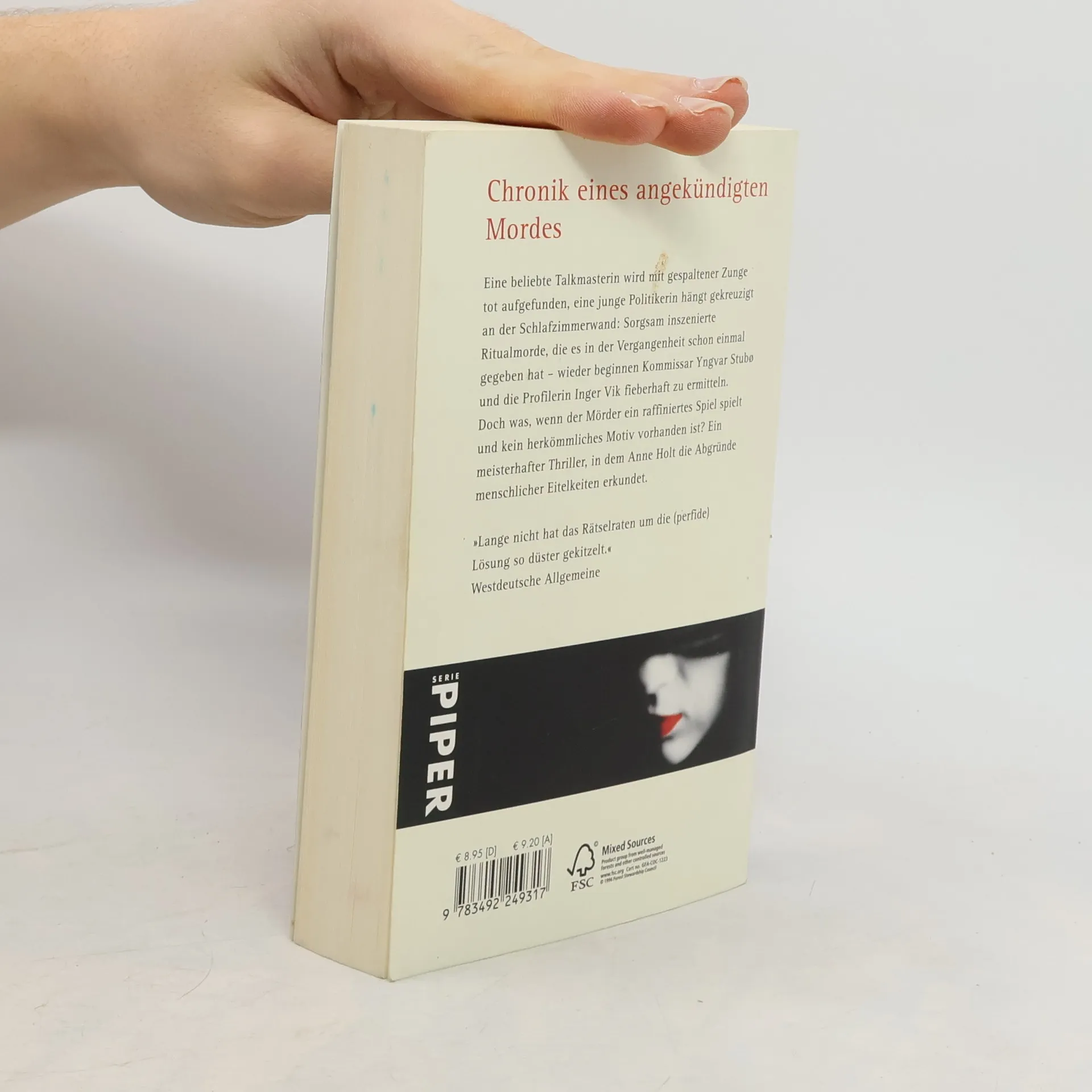 Eine beliebte Talkmasterin wird mit gespaltener Zunge tot aufgefunden, eine junge Politikerin hängt gekreuzigt an der Schlafzimmerwand: Sorgsam inszenierte Ritualmorde, die es in der Vergangenheit schon einmal gegeben hat – wieder beginnen Kommissar Yngvar Stubø und die Profilerin Inger Vik fieberhaft zu ermitteln. Doch was, wenn der Mörder ein raffiniertes Spiel spielt und kein herkömmliches Motiv vorhanden ist? Ein meisterhafter Thriller, in dem Anne Holt die Abgründe menschlicher Eitelkeiten erkundet.