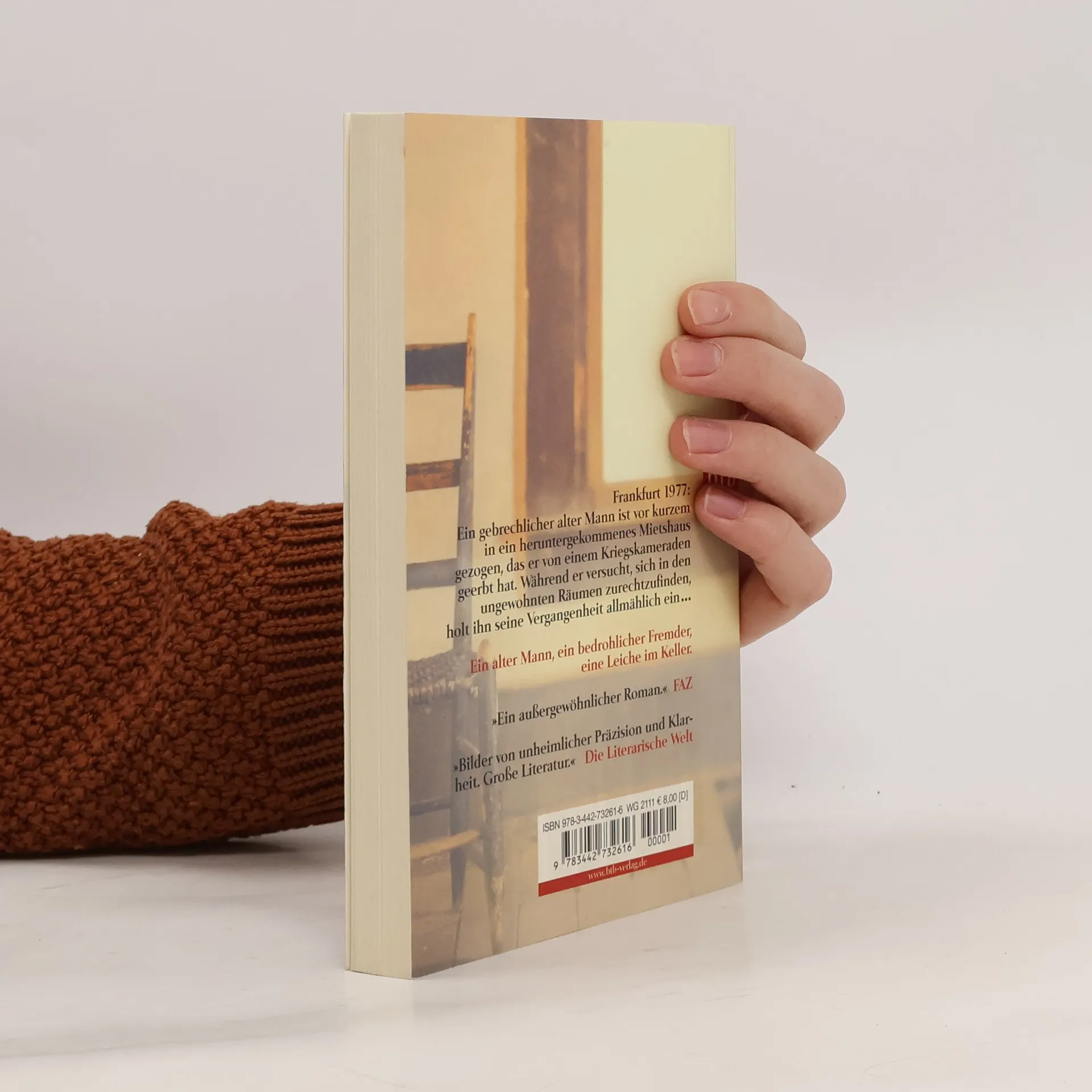 Ausgezeichnet mit dem Ingeborg-Bachmann-Preis: Ein lebensmüder Mann, ein bedrohlicher Fremder, eine Leiche im Keller. Frankfurt 1977: Ein altersschwacher Mann hat soeben eine Wohnung in dem Mietshaus bezogen, das er von einem Kriegskameraden geerbt hat, einem gewissen Müller, an den er sich nicht mehr erinnern kann. Und während der Alte auf Krücken versucht, sich in dem fremden, verrotteten Haus zurechtzufinden, holt ihn seine Geschichte allmählich ein: Ein Fremder wird zur Bedrohung. Die Wanne im Keller, meint er, enthält eine Leiche. Und ist Müller nicht jener Kamerad, mit dem er im russischen Gefangenenlager Dienst getan hatte?