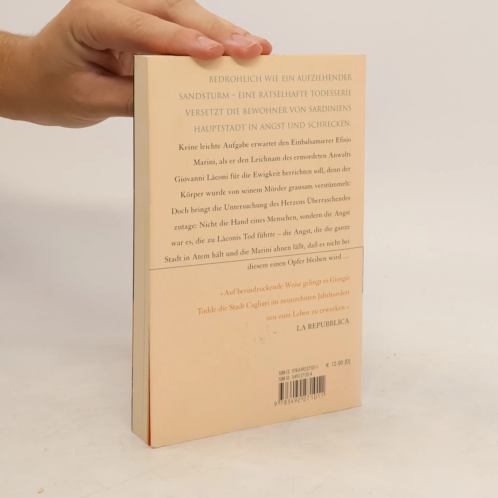 Sardinien, 1861. Eine rätselhafte Todesserie versetzt die Bewohner der Insel in Angst und Schrecken. Als die Leiche des offensichtlich erwürgten Anwalts Giovanni Làconi zu dem Einbalsamierer Efisio Marini gebracht wird, stellt dieser fest, daß das Opfer bereits tot war, bevor es stranguliert wurde. Allerdings schenkt niemand Marinis Überlegungen Gehör. Die Polizei, die der Bevölkerung möglichst schnell einen Mörder präsentieren möchte, glaubt, die Schuldigen in einem des Opiumhandels überführten Schmugglerring gefunden zu haben. Doch Marini ist sicher, daß sich die Wahrheit in einem noch viel düstereren Umfeld verbirgt.