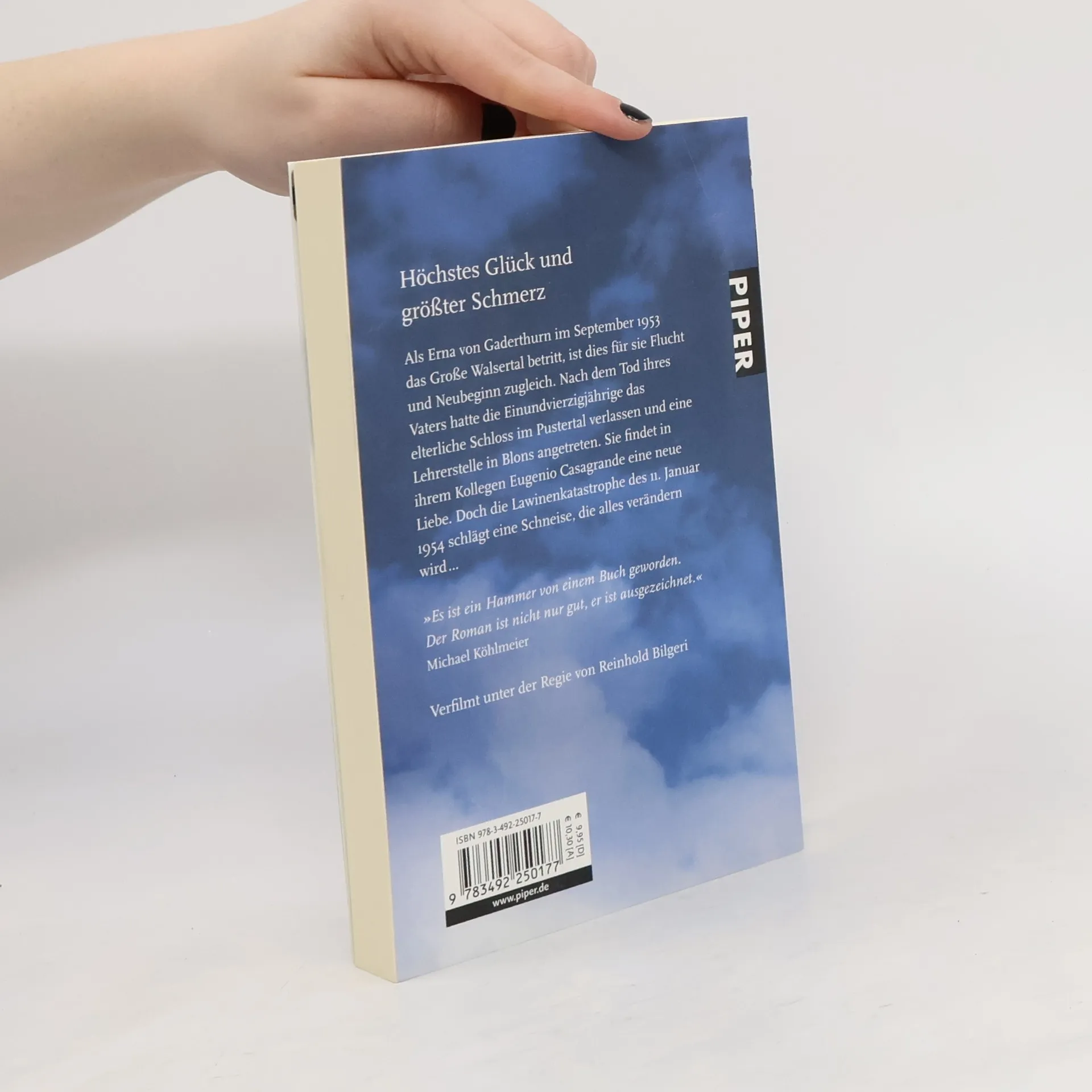 Der Mega-Bestseller von Reinhold BilgeriAls Erna von Gaderthurn im September 1953 das Große Walsertal betritt, ist es für sie Flucht und Neubeginn zugleich. Nach dem Tod ihres Vaters hat sie das elterliche Schloss im Pustertal verlassen, um eine Stelle als Lehrerin in Blons anzutreten. Sie findet in ihrem Kollegen Eugenio Casagrande eine neue Liebe. Doch der 11. Jänner 1954 schlägt eine Schneise, die alles verändern wird, für immer…Reinhold Bilgeri verwebt meisterhaft das historische Lawinenunglück von Blons mit der Biografie seiner Mutter – ein packender Roman über eine tragische Liebe."Es ist ein Hammer von einem Buch. Der Roman ist nicht nur gut, er ist ausgezeichnet."Michael KöhlmeierBisher über 65 000 verkaufte ExemplareFilmerfolg in Golden Rooster Award als "Bester ausländischer Film"Über 100 000 Besucher des Kinofilms in Österreich