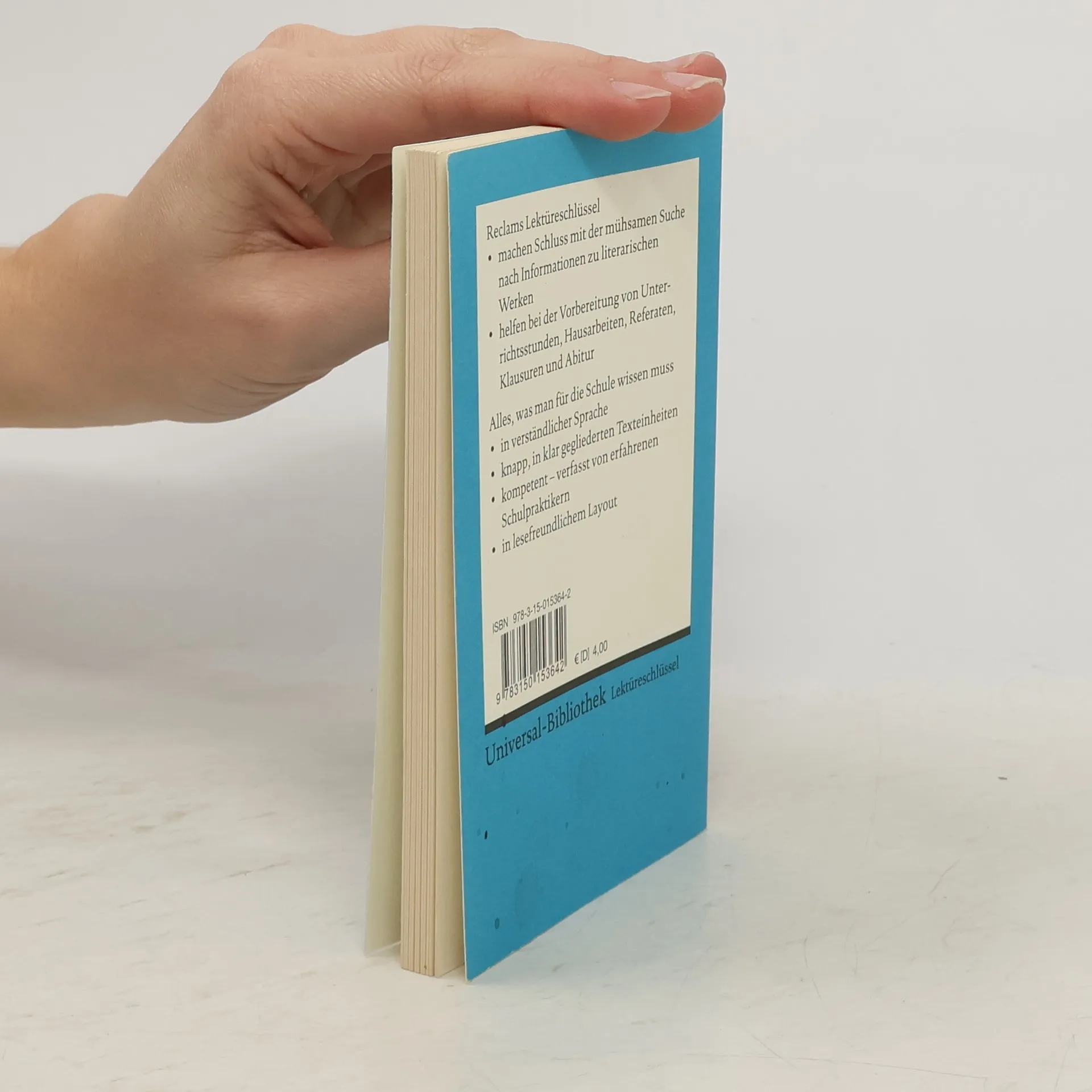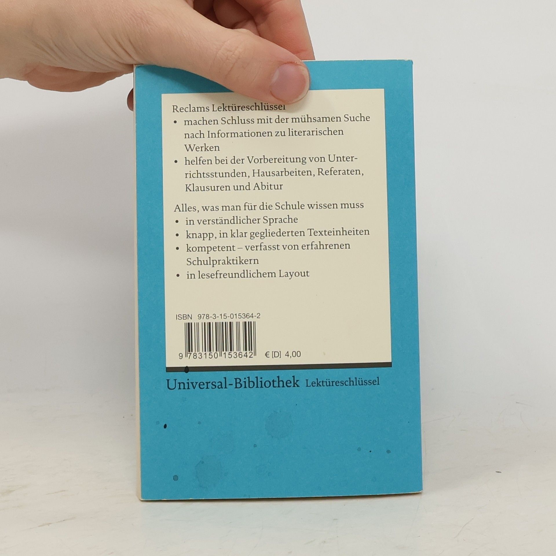 Lektüreschlüssel für Schüler erschließen einzelne literarische Werke. Um eine Interpretation als Zentrum gruppieren sich 10 wichtige Verständniszugänge: * Erstinformation zum Werk * Inhaltsangabe * Personen (Konstellationen) * Werk-Aufbau (Strukturskizze) * Wortkommentar * Interpretation * Autor und Zeit * Rezeption * „Checkliste“ zur Verständniskontrolle * Lektüretipps mit Filmempfehlungen * Raum für Notizen