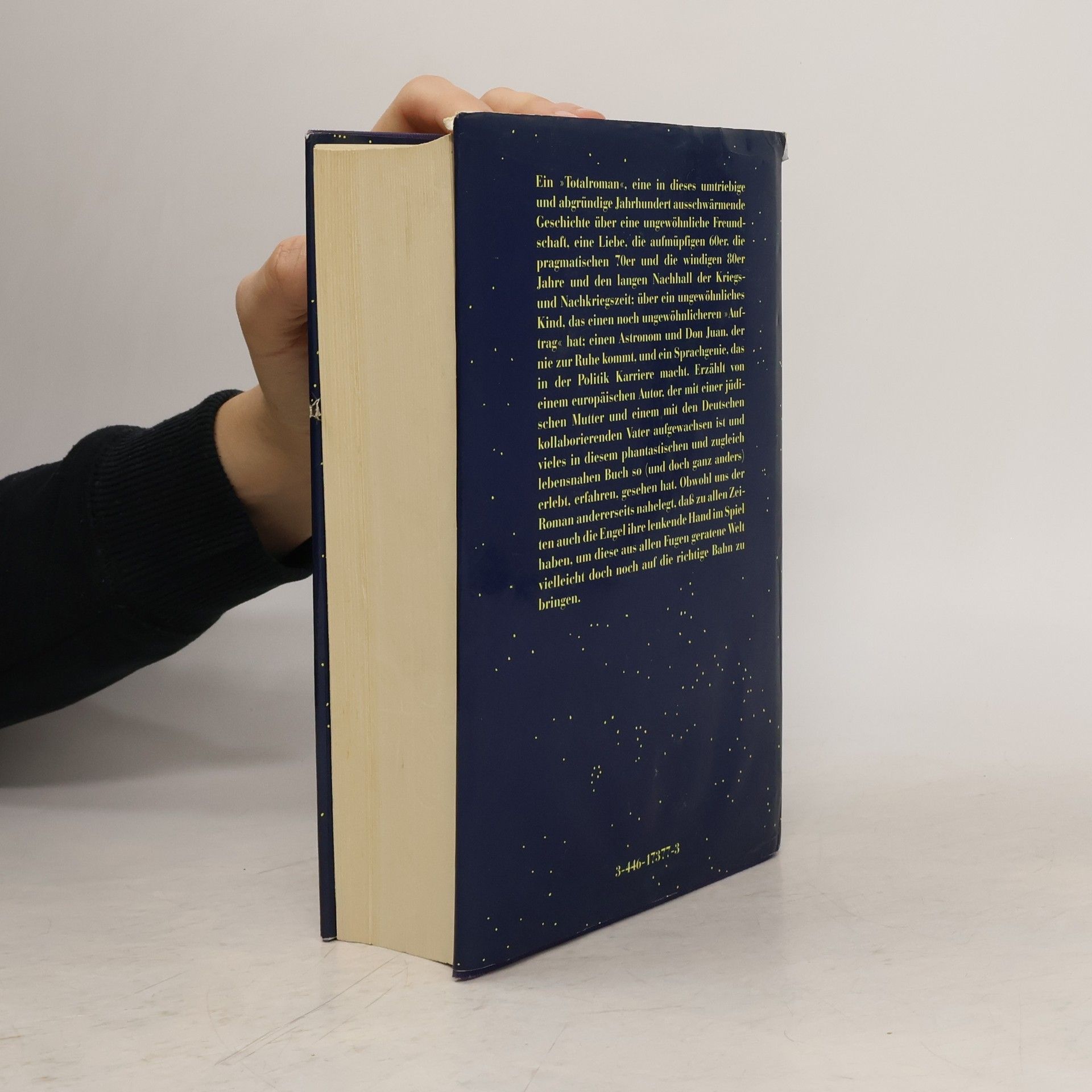 Ein Totalroman, eine in dieses umtriebige und abgründige Jahrhundert ausschwärmende Geschichte über eine ungewöhnliche Freundschaft, eine Liebe, die aufmüpfigen sechziger, die pragmatischen siebziger und die windigen achtziger Jahre; und den langen Nachhall der Kriegs- und Nachkriegszeit; über ein ungewöhnliches Kind, das einen noch ungewöhnlicheren Auftrag hat; einen Astronomen und Don Juan, der nie zur Ruhe kommt, und ein Sprachgenie, das in der Politik Karriere macht.