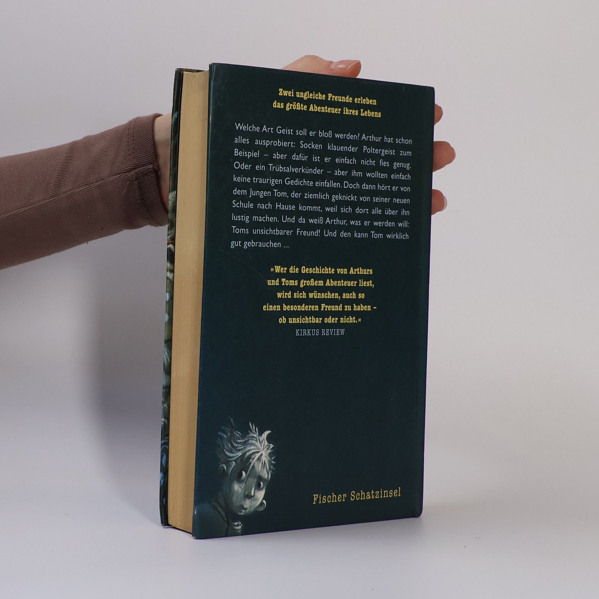 Der Graue Arthur kann sich nicht entscheiden, welche Sorte Geist er sein möchte. Er hat schon fast alles ausprobiert. Als er die Verzweiflung des Jungen Tom mitbekommt, beschliesst er, Toms unsichtbarer Freund zu werden. Ab 9.