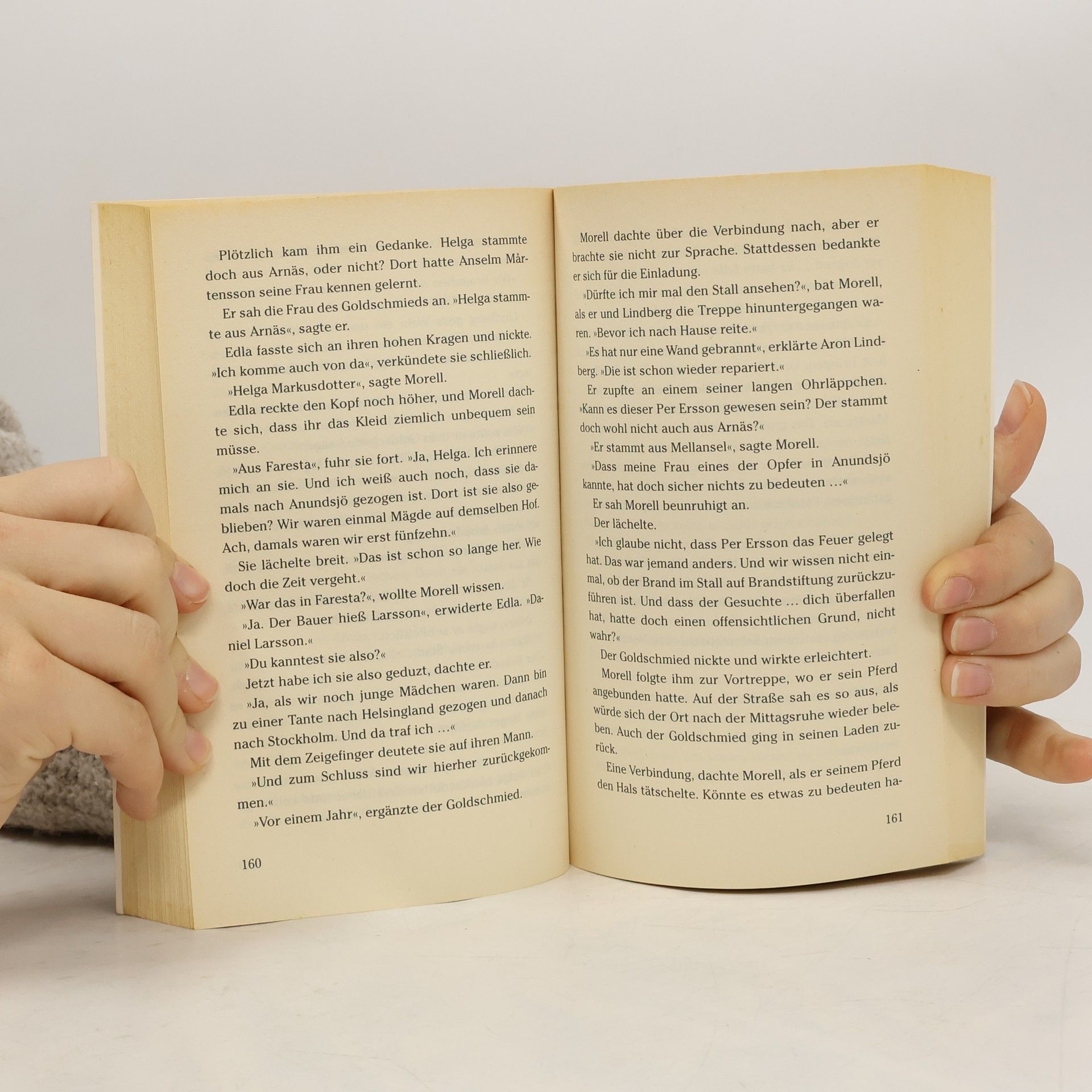Der vorbestrafte Knecht Per Ersson bringt bei einem nächtlichen Stelldichein seine Verlobte, die Magd Lisa vom Hof des beliebten Großbauern Anselm Martensson, um, weil er im Eifersuchtswahn glaubt, sie sei ihm untreu gewesen. Er kann fliehen. Amtmann Morell macht sich auf die Suche nach dem Mörder. Bevor Ersson allerdings die Gegend verlässt, versucht er noch, die Verlobungsringe wieder zu Geld zu machen und erwürgt dabei in seiner Panik um ein Haar den Goldschmied, der ihn auf Grund eines Fahndungsbildes erkannt hat. Martenssons Sohn Odd hält Brandwache in der nahe gelegenen Handwerkersiedlung. Er kann einen Brand beim Goldschmied rechtzeitig entdecken und löschen. Kurz darauf brennt die Scheune seines Vaters - und wenig später der gesamte Bauernhof bis auf die Grundmauern ab, wobei die Eltern ums Leben kommen. Morell vermutet einen Zusammenhang zwischen den Brandstiftungen. Er findet heraus, dass sowohl Martenssons Frau als auch die des Goldschmieds als Mägde bei Daniel Larsson tätig waren. Der Leser wird förmlich eingewickelt von dieser faszinierend-lebendigen Sprache und dieser berührenden und spannenden Geschichte. Kaum hat man diesen Krimi zu Ende gelesen, könnte man gleich noch einmal von vorn beginnen. MDR 1