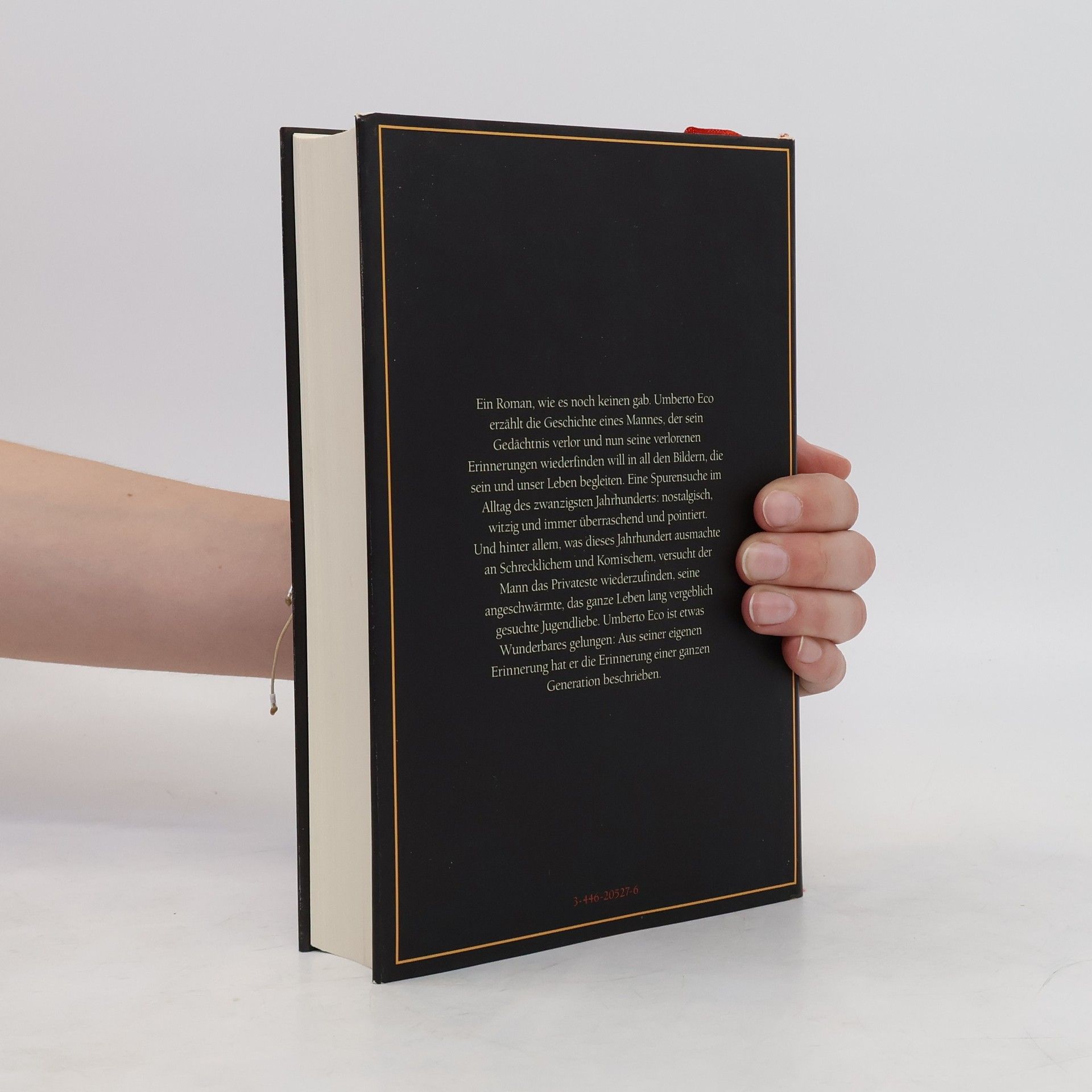 Giambattista Bodoni, Antiquar, erwacht aus dem Koma und hat einen Teil seines Gedächtnisses verloren. Auf der Suche nach seinen persönlichen Erinnerungen fährt er ins Haus seiner Kindheit und findet dort alles wieder: Bücher und Bilder, Comics und Kino, Pastadosen und Zigarettenschachteln. Was für Bodoni eine Reise der Wiederentdeckungen durch sein Leben und seine Lieben wird, gerät Eco zur Zeitreise durch das 20. Jahrhundert: witzig, nostalgisch und überraschend.