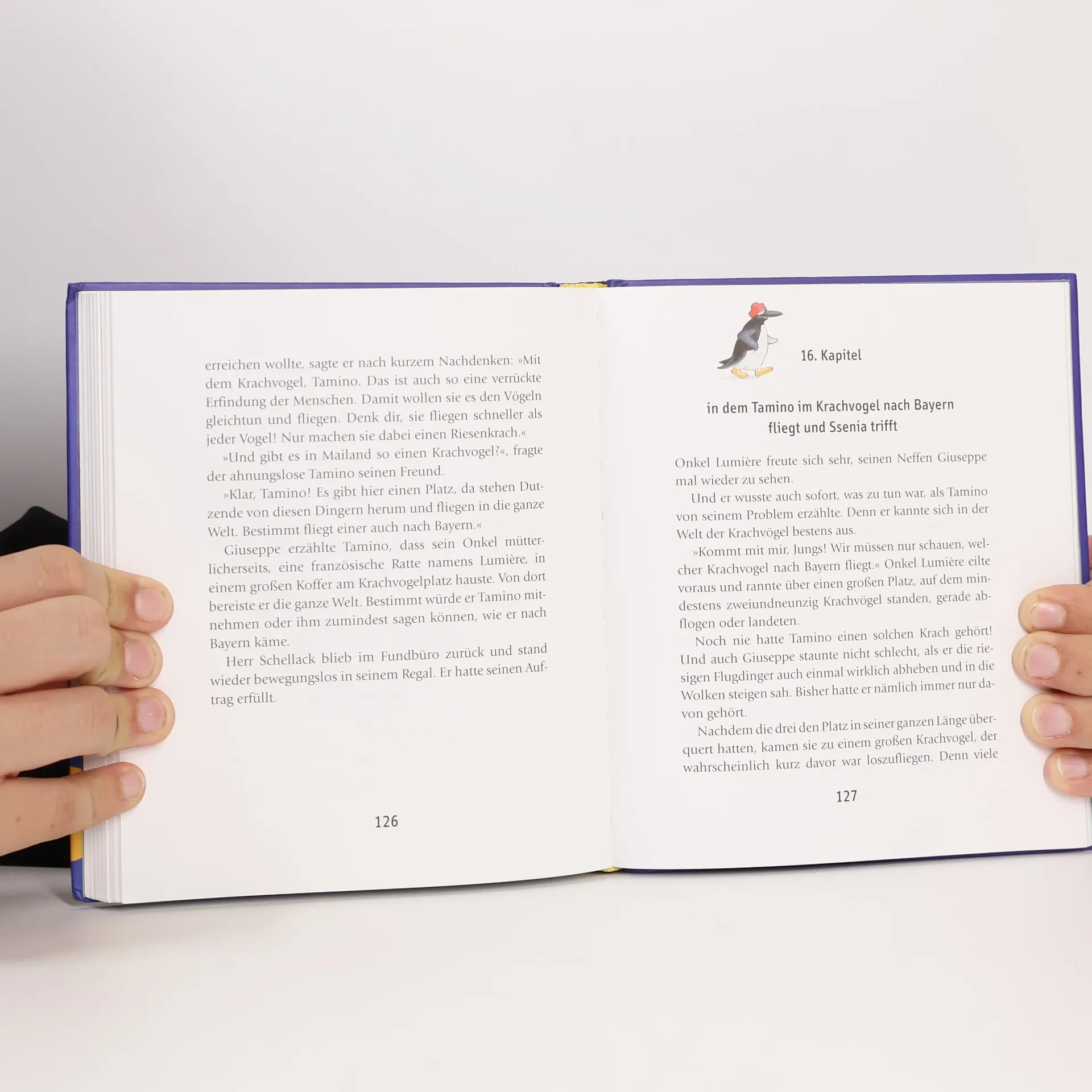 Seit Tamino Pinguin erfahren hat, dass Pingzessin Nanuma, die Tochter des Kaiserpinguins, entführt worden ist, kann er nicht mehr schlafen. Da muss man doch etwas tun! Auch wenn man nur ein kleiner Pinguin ist. Ephraim, der weise Buckelwal, rät ihm, die Liebe zu suchen, um Nanuma zu retten. Aber was ist das, die Liebe? Christian Bergs erfolgreiches Kinderbuch in neuer Ausstattung. Ab 6 Jahren