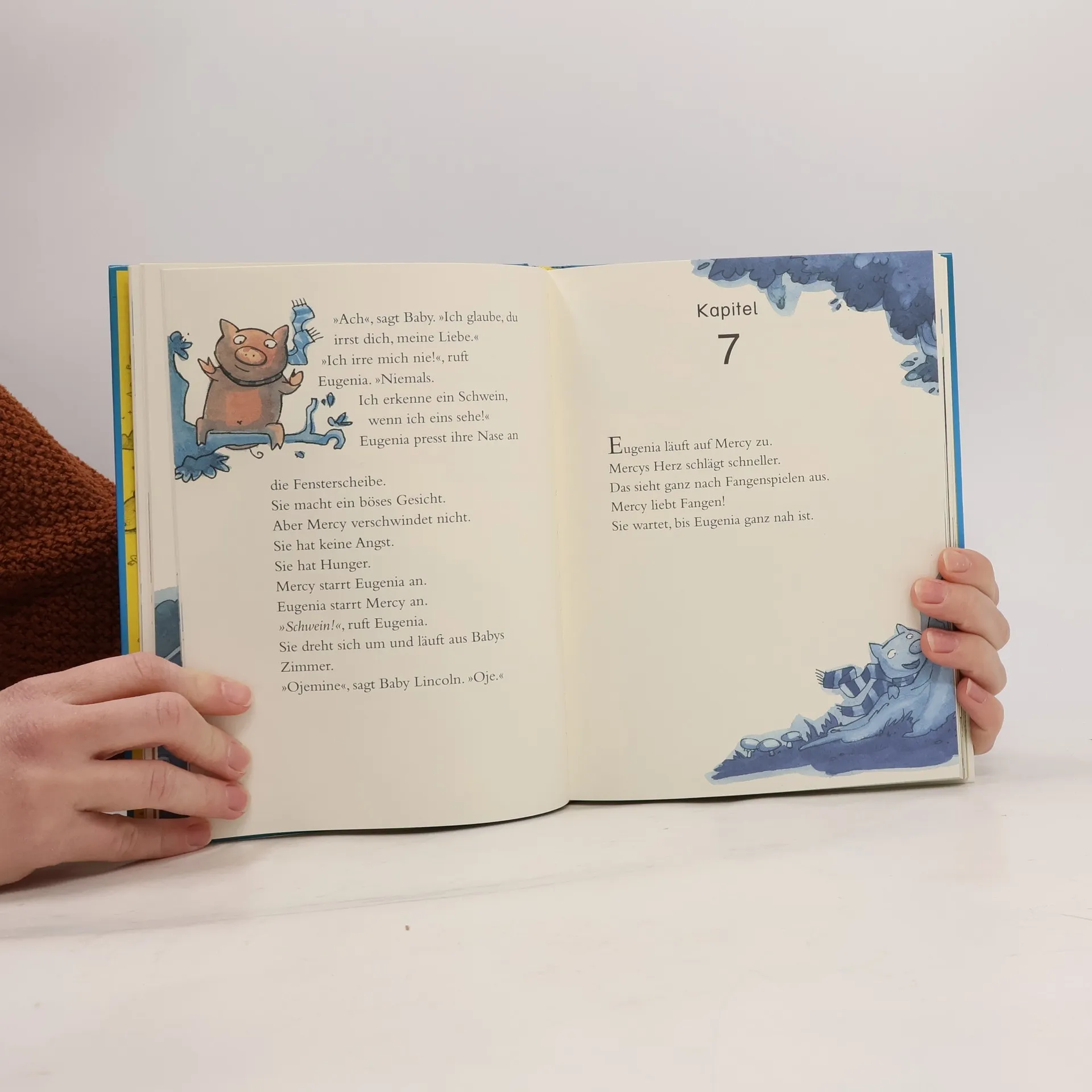 Wo Mercy Watson lebt, ist das Glück zu Hause! Und Mercy Watson, fröhliches Hausschwein mit possierlichem Ringelschwänzchen, lebt bei dem freundlichen Ehepaar Mr und Mrs Watson. Für die Watsons ist Mercy nicht einfach ein Schwein: Für sie ist Mercy ein echtes Schweinewunder! Mercy darf sogar mit ins Ehebett – bis selbiges zusammenkracht, denn auch ein Wunderschwein ist einfach zu schwer. Aber – gewollt oder ungewollt – die Schweinedame löst derlei brenzlige Situationen mit Leichtigkeit. Und egal, was passiert: Am Ende kann die Schweinedame sich immer auf ihre Lieblingsspeise freuen - auf viele Scheiben großzügig gebutterten Toast. Extra breites Vorleseformat mit vielen farbigen Illustrationen