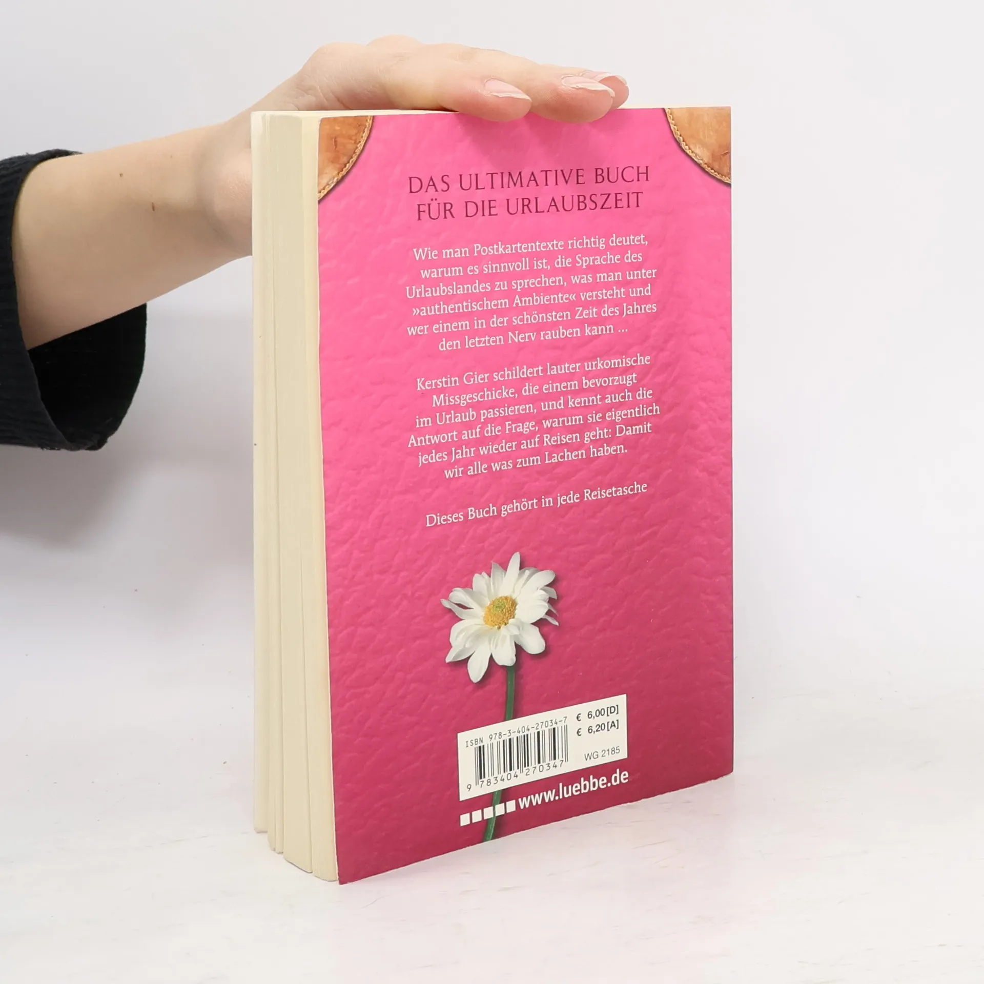 Dieses Buch gehört in jede Reisetasche Wie man Postkartentexte richtig deutet, warum es sinnvoll ist, die Sprache des Urlaubslandes zu sprechen, was man unter „authentischem Ambiente“ versteht und wer einem in der schönsten Zeit des Jahres den letzten Nerv rauben kann ... Kerstin Gier schildert lauter urkomische Missgeschicke, die einem bevorzugt im Urlaub passieren, und kennt auch die Antwort auf die Frage, warum sie eigentlich jedes Jahr wieder auf Reisen geht: Damit wir alle was zum Lachen haben.