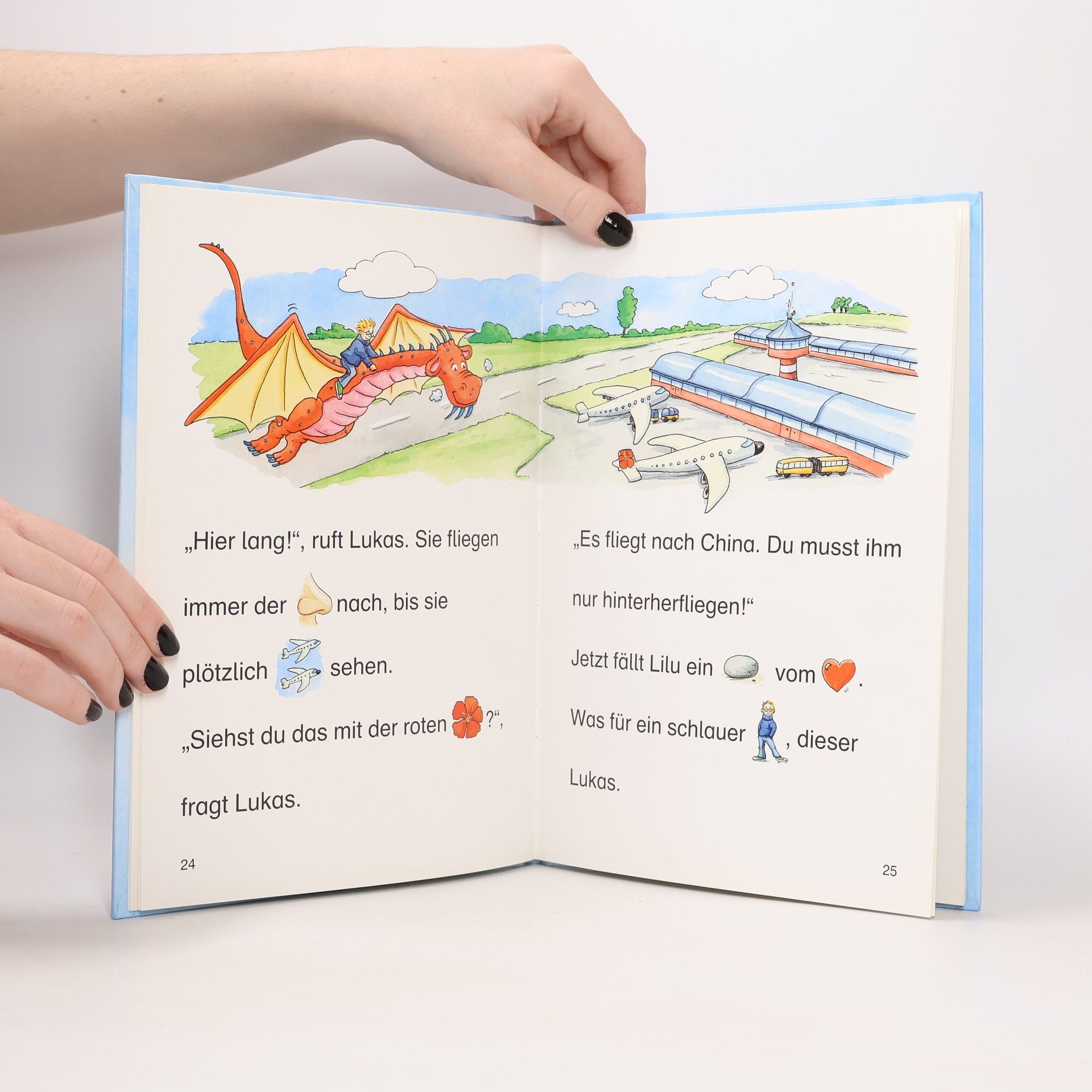 Ach du grüne Neune! Eigentlich wollte Lilu nur einen kleinen Ausflug machen, doch nun findet er nicht mehr nach Hause. Ob Lukas dem Drachen helfen kann? Ganz andere Sorgen hat dagegen die Hexe Schlampine: Ihr Besen spielt plötzlich verrückt und macht alles kaputt. Dabei sollte er doch aufräumen! Zum Glück hat der kleine Drache Topsi eine gute Idee … • Kurze Geschichten • Bilder ersetzen Hauptwörter • Große Fibelschrift • Für Kinder ab 5 Jahren