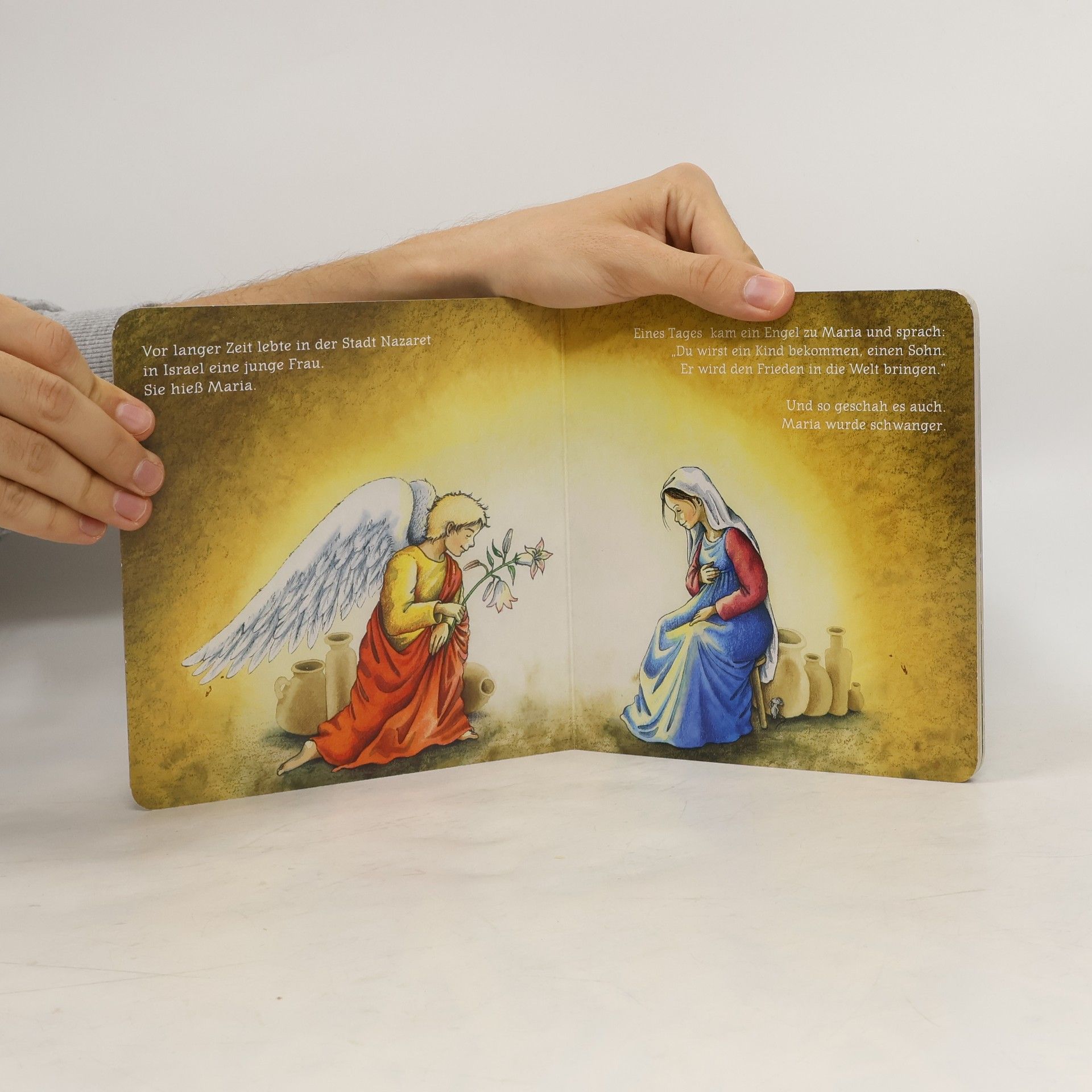 Dieses Bilderbuch in fester Pappe erzählt die Geschichte der Geburt Jesu an Weihnachten vor 2000 Jahren: Wie der Engel zu Maria kam, warum Maria und Josef nach Betlehem gingen, wieso das Kind im Stall zur Welt kam, woher die Hirten von der Geburt wussten und warum auch drei Könige das Kind besuchten - kindgerecht und farbenfoh illustriert von Susanne Krauß.