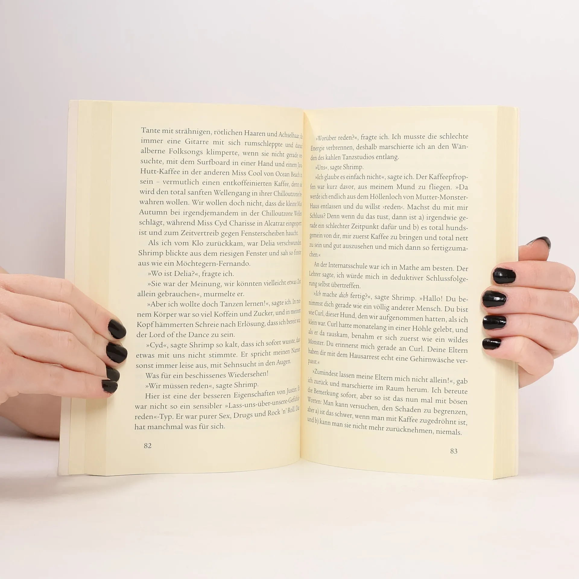 Ein schriller Koffeintrip der Gefühle. Cyd Charisse ist vor allem eins: genervt. Von ihrer Familie und von Shrimp, dem süßen Surfer, in den sie verknallt ist, der aber nichts von ihr wissen will. Sie flüchtet nach New York zu ihrem “Echt-Dad”, der ganz anders ist, als sie ihn sich vorgestellt hat. In New York gibt es jede Menge coole Leute, so wie Cyds “neuer” Bruder Danny, der das Café Village Idiots betreibt. Hier könnte Cyd den ganzen Tag lang leckeren Kaffee schlürfen. Doch als sie zufällig ihren Ex-Freund Justin trifft, der sie damals so bitter im Stich gelassen hat, reißt eine alte Wunde wieder auf.