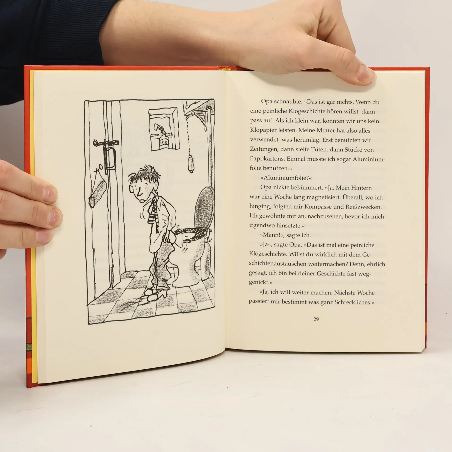 In Colfers neuestem Streich erfährt Tim, wie sein Bruder Marty ihn einmal wegen eines roten Riesengummibabys loswerden wollte und was für unglaubliche Geschichten Opa auf Lager hat. Tim findet, dass er in seiner Familie immer zu kurz kommt, keiner seinen Sorgen und Nöten zuhört; die Knie seiner Mutter immer von kleinen Brüdern besetzt sind und Dads Aufmerksamkeit meistens Marty gehört. Zum Glück springt Opa in die Bresche und fordert Tim zu einem Geschichtenwettbewerb heraus. Doch Tim kann machen, was er will: Opas Geschichten sind immer verrückter, unglaublicher und spektakulärer. Wenn Tim erzählt, wie dem Frisör das Haarschneidegerät ausgerutscht ist, präsentiert Opa mal eben, wo ihn der Hai in den Kopf gebissen hat. Auch die peinliche Geschichte vom fehlenden Toilettenpapier weiß Opa zu übertrumpfen, schließlich musste er einmal Alufolie benutzen. Ausgerechnet sein Vater rettet ihn in dieser schier ausweglosen Situation und erzählt Tim, wie Marty, der schrecklichste Bruder der Welt, den kleinen Tim einmal ganz dringend loswerden wollte. Und das ist eine unglaubliche Geschichte, die selbst Opa nicht mehr überbieten kann!