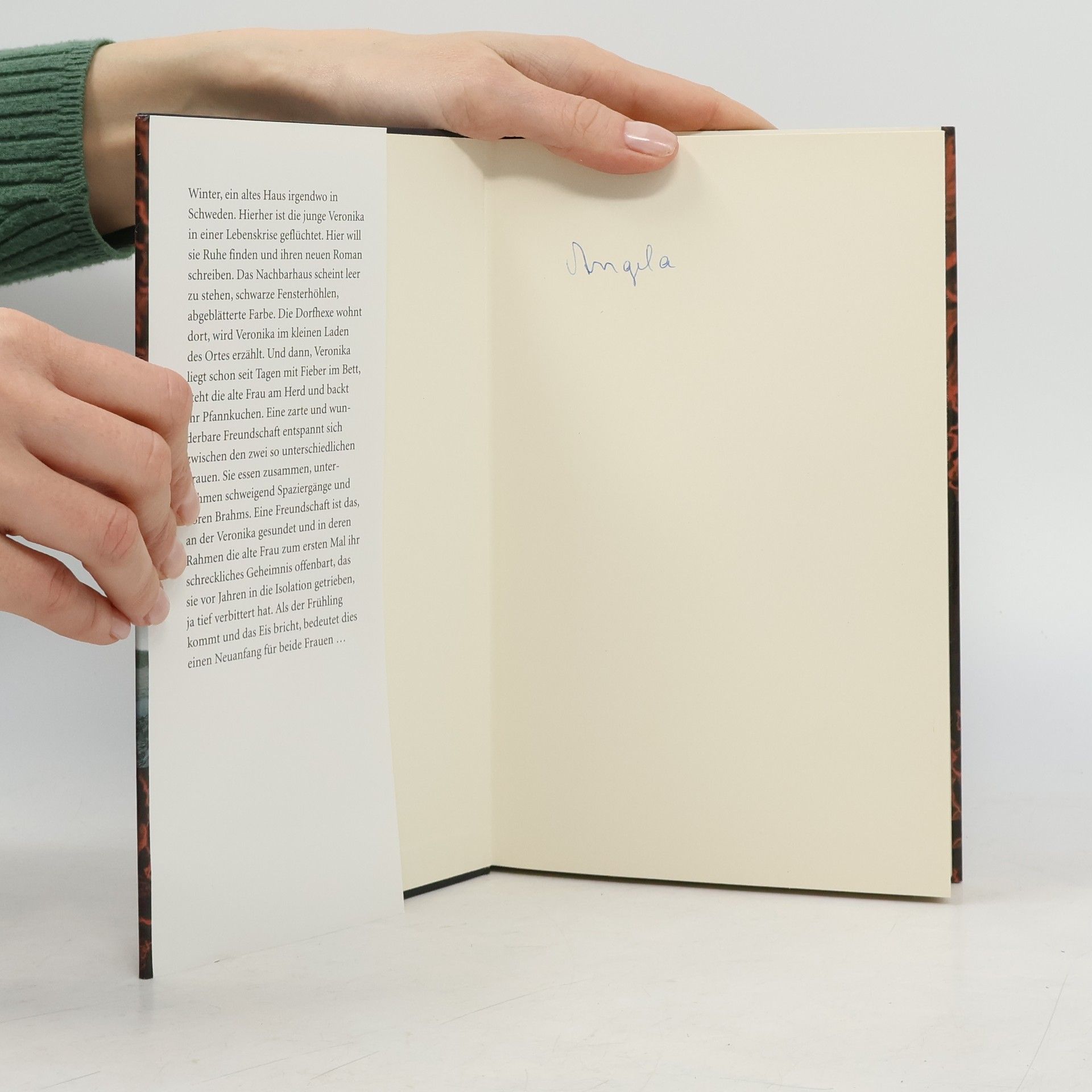 Welchen Preis hat das Glück? Zwei Frauen, zwei Lebensgeschichten - und eine Begegnung, die alles zum Guten wendet. Winter, ein altes Haus irgendwo in Schweden. Hierher ist die junge Veronika in einer Lebenskrise geflüchtet. Hier will sie Ruhe finden und ihren neuen Roman schreiben. Das Nachbarhaus scheint leer zu stehen, schwarze Fensterhöhlen, abgeblätterte Farbe. Die Dorfhexe wohnt dort, wird Veronika im kleinen Laden des Ortes erzählt. Und dann, Veronika liegt schon seit Tagen mit Fieber im Bett, steht die alte Frau am Herd und backt ihr Pfannkuchen. Eine zarte und wunderbare Freundschaft entspannt sich zwischen den zwei so unterschiedlichen Frauen. Sie essen zusammen, unternehmen schweigend Spaziergänge und hören Brahms. Eine Freundschaft ist das, an der Veronika gesundet und in deren Rahmen die alte Frau zum ersten Mal ihr schreckliches Geheimnis offenbart, das sie vor Jahren in die Isolation getrieben, ja tief verbittert hat. Einst hat sie aus Angst, nicht genug lieben zu können, ihr Leben dem Hass und der Rache geweiht. Doch nun will sie noch einmal alles ändern, will lieben, für jemanden da sein und das Leben erfahren. Als der Frühling kommt und das Eis bricht, bedeutet dies einen Neuanfang für beide Frauen-…
