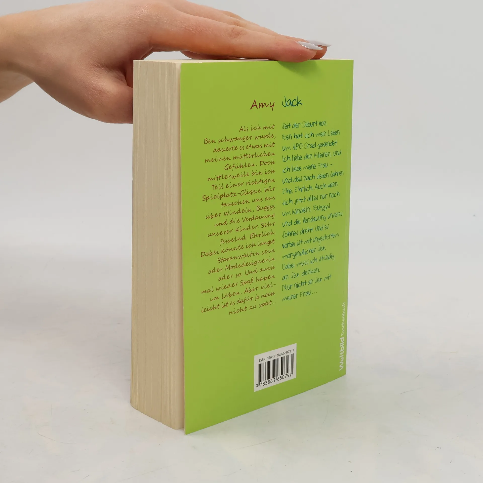 Amy Als ich mit Ben schwanger wurde, dauerte es etwas mit meinen mütterlichen Gefühlen. Doch mittlerweile bin ich Teil einer richtigen Spielplatz-Clique. Wir tauschen uns aus über Windeln, Buggys und die Verdauung unserer Kinder. Sehr fesselnd. Ehrlich. Dabei könnte ich längst Staranwältin sein oder Modedesignerin oder so. Und auch mal wieder Spaß haben im Leben. Aber vielleicht ist es dafür ja noch nicht zu spät … Jack Seit der Geburt von Ben hat sich mein Leben um 180° gewendet. Ich liebe den Kleinen, und ich liebe meine Frau – und das nach sieben Jahren Ehe. Ehrlich. Auch wenn sich jetzt alles nur noch um Windeln, Buggys und die Verdauung unseres Sohnes dreht. Und es vorbei ist mit ungestörtem morgendlichen Sex. Dabei muss ich ständig an Sex denken. Nur nicht an Sex mit meiner Frau …