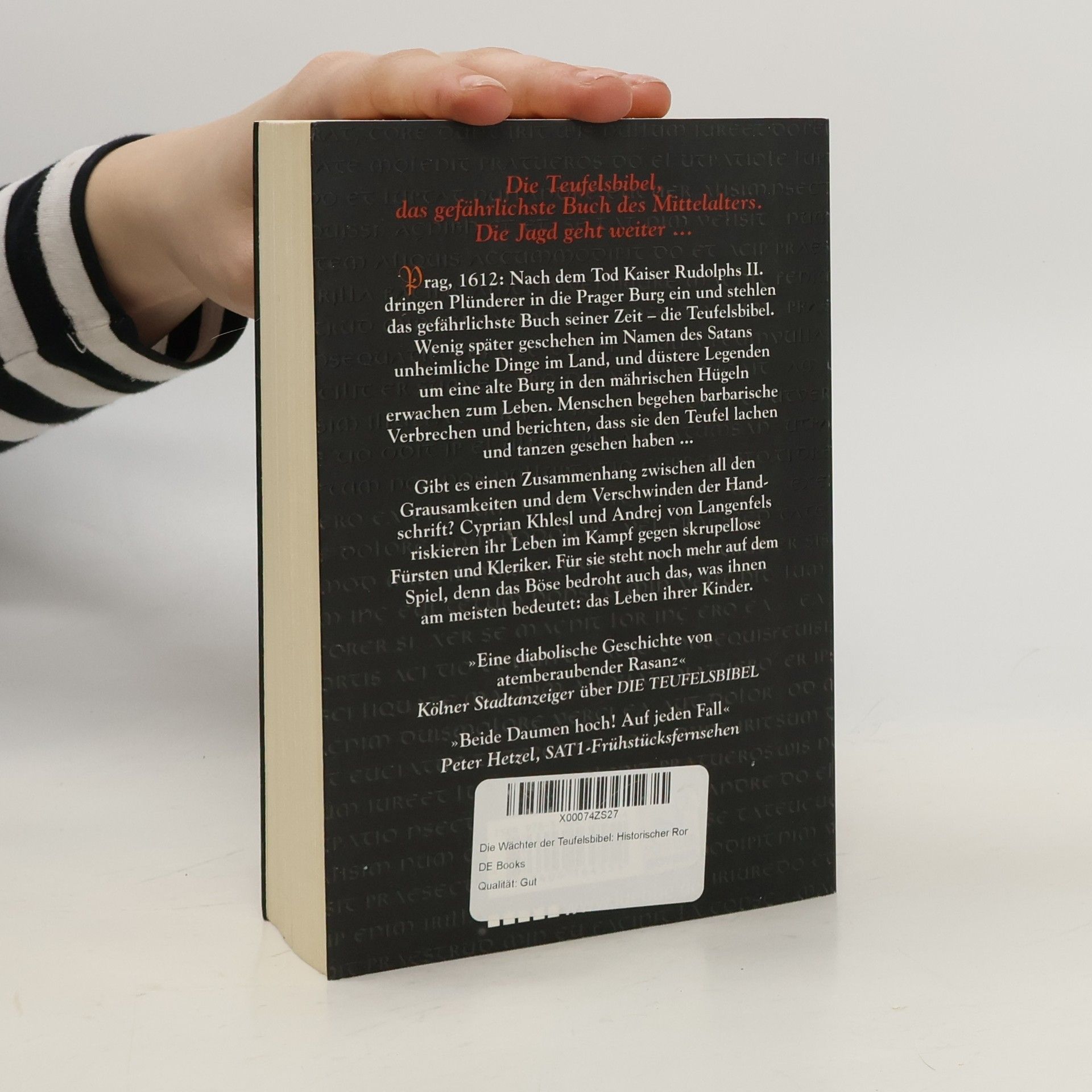 Prag, 1612: Nach dem Tod Kaiser Rudolphs II. dringen Plünderer in die Prager Burg ein und stehlen das gefährlichste Buch seiner Zeit – die Teufelsbibel. Wenig später geschehen im Namen des Satans unheimliche Dinge im Land, und düstere Legenden um eine alte Burg in den mährischen Hügeln erwachen zum Leben. Menschen begehen barbarische Verbrechen und berichten, dass sie den Teufel lachen und tanzen gesehen haben ... Gibt es einen Zusammenhang zwischen all den Grausamkeiten und dem Verschwinden der Handschrift? Cyprian Khlesl und Andrej von Langenfels riskieren ihr Leben im Kampf gegen skrupellose Fürsten und Kleriker. Für sie steht noch mehr auf dem Spiel, denn das Böse bedroht auch das, was ihnen am meisten bedeutet: das Leben ihrer Kinder.