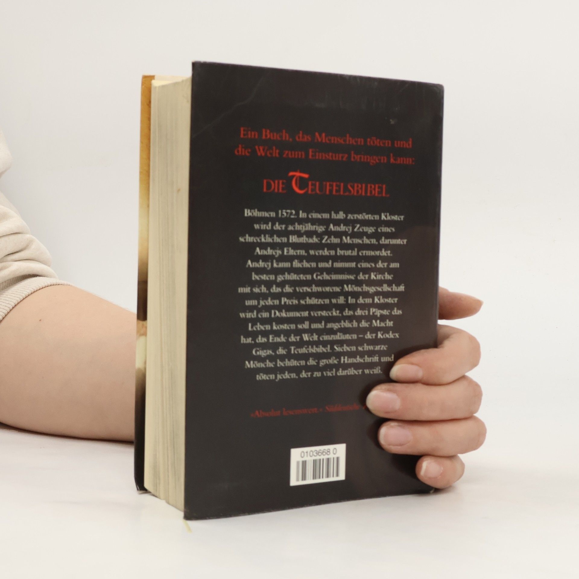 Böhmen 1572. In einem halb verfallenen Kloster wird der achtjährige Andrej Zeuge eines schrecklichen Blutbads: Zehn Menschen, darunter Andrejs Eltern, werden von einem rasenden Mönch brutal ermordet. Eine der Frauen bringt sterbend ein Kind zur Welt. Der Prior befiehlt, auch den Säugling zu töten - denn es gilt, alle Spuren zu verwischen, die irgendjemanden in das abgelegene Kloster führen könnten. Andrej kann fliehen und nimmt eines der am besten gehüteten Geheimnisse der Kirche mit sich, das die verschwiegene Mönchsgesellschaft um jeden Preis zu schützen geschworen hat: In dem Kloster wird ein Buch versteckt, das drei Päpsten das Leben kosten und die Macht haben soll, das Ende der Welt einzuläuten - der Codex Gigas, die Teufelsbibel, ein Kompendium des Bösen. Sieben schwarze Mönche behüten die große Handschrift und töten jeden, der zuviel darüber weiß. Doch das Wissen um das Buch des Teufels ist das einzige Erbe, das Andrej von seinem Vater geblieben ist ...