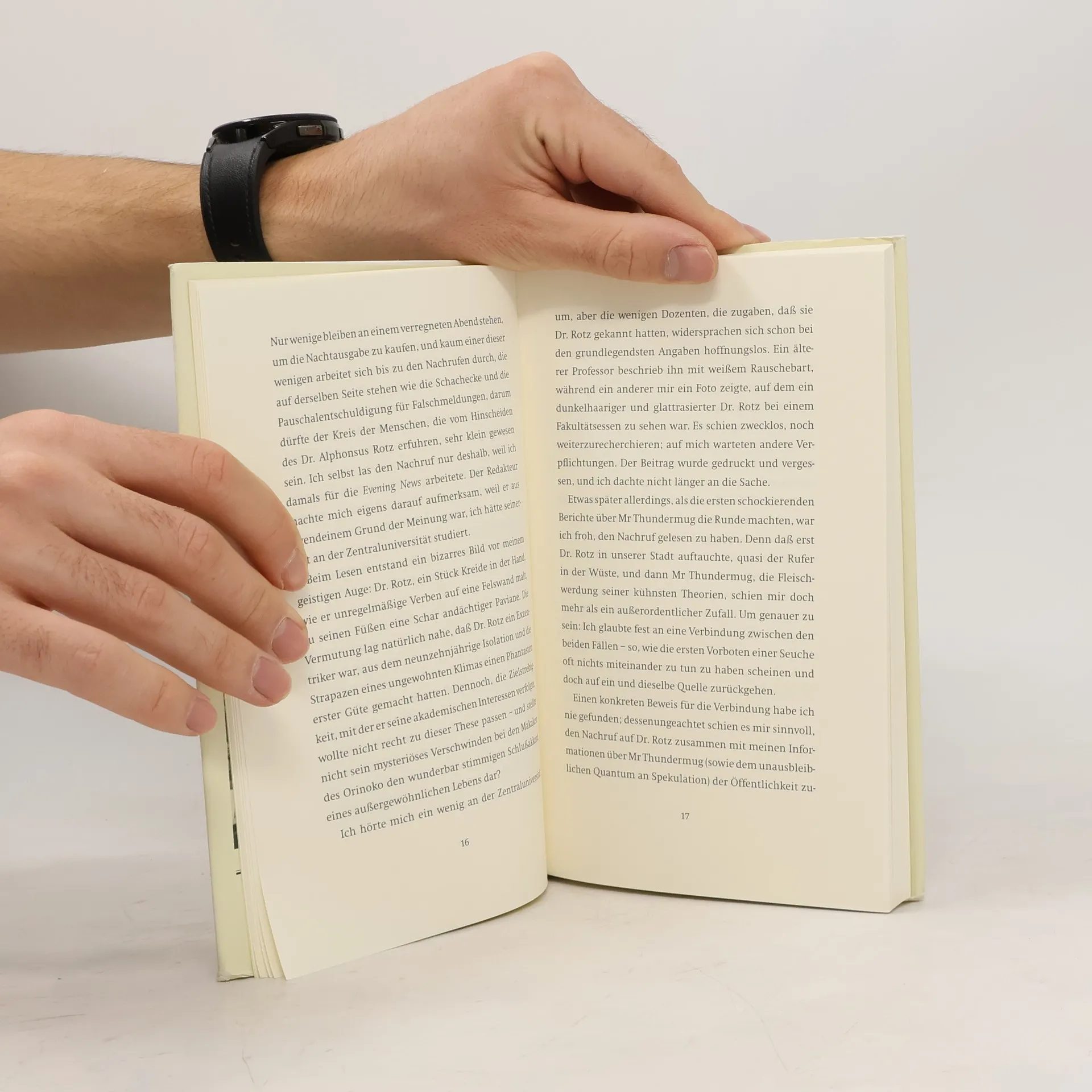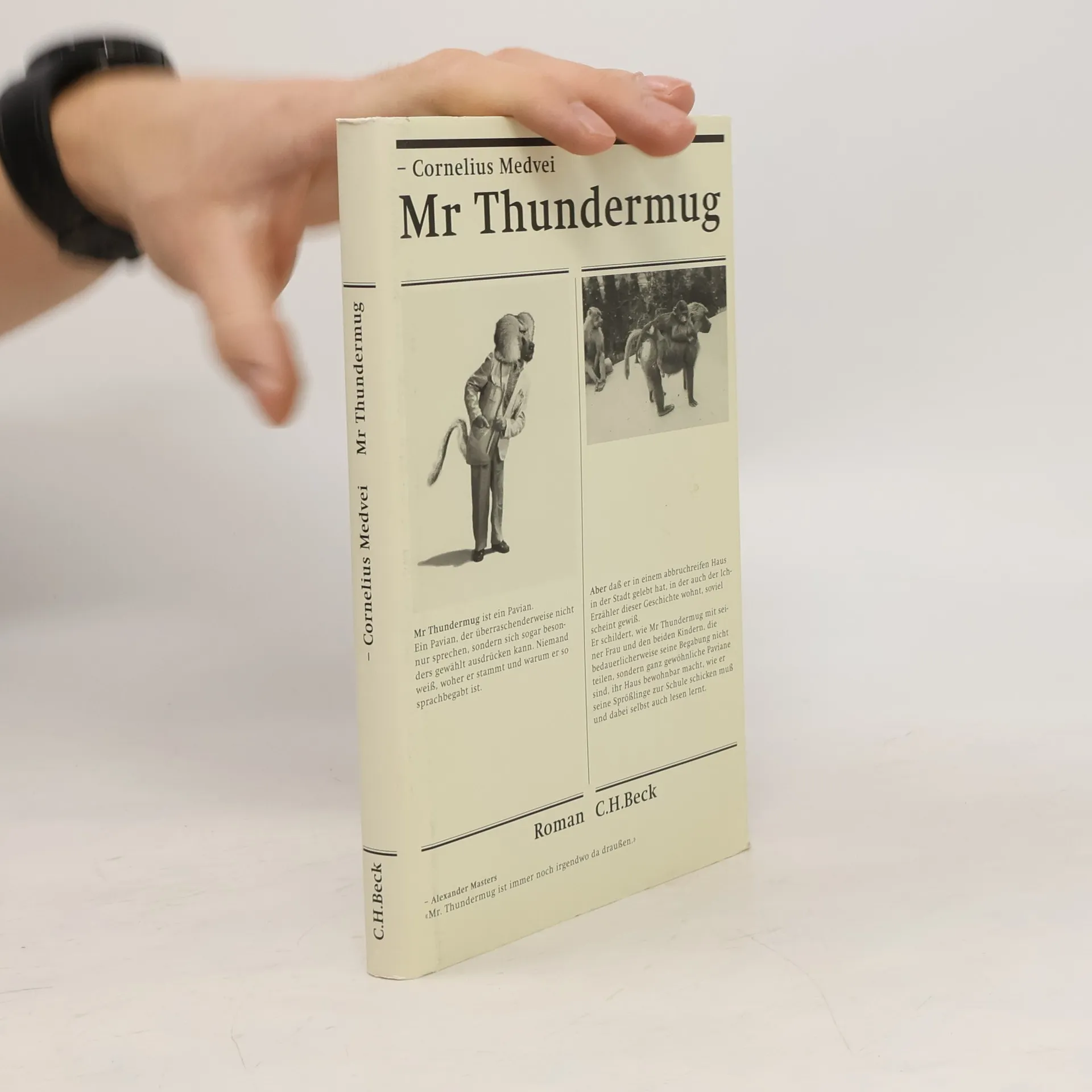 "'Keine Zeit', sagte der Pavian, 'dringende Geschäfte', und er begann den Gehsteig entlangzugaloppieren, dass Mr. Claptrap krummrückig neben ihm herhetzen musste, um das Gespräch fortführen zu können.„ Mr Thundermug ist ein Pavian. Ein Pavian, der überraschenderweise nicht nur sprechen, sondern sich sogar besonders gewählt ausdrücken kann. Niemand weiß, woher er stammt und warum er so sprachbegabt ist. Aber daß er in einem abbruchreifen Haus in der Stadt gelebt hat, in der auch der Ich- Erzähler dieser Geschichte wohnt, soviel scheint gewiß. In seinem Bericht begibt sich der Erzähler auf Mr Thundermugs Spuren und versucht, die sich zuspitzenden Ereignisse zu rekonstruieren: Er schildert, wie Mr Thundermug mit seiner Frau und den beiden Kindern, die bedauerlicherweise seine Begabung nicht teilen, sondern ganz gewöhnliche Paviane sind, ihr Haus bewohnbar macht, wie er seine Sprößlinge zur Schule schicken muß und dabei selbst endlich auch lesen lernt. Er begleitet ihn zum Arzt und ist dabei, als er sich in die Lehrerin seiner Kinder, Miss Young, verliebt. Aber Mr Thundermug wohnt illegal in dem Abbruchhaus, die Stadtverwaltung will es räumen lassen. Als er sich weigert auszuziehen, wird er verklagt - ausgerechnet wegen Tierquälerei. Seine Familie bringt man in den Zoo, und er selbst wird vor Gericht gestellt. Cornelius Medveis “Mr Thundermug" ist eine anrührende, reizende und skurrile Geschichte über einen ganz besonderen Außenseiter. Voller Komik und Phantasie berichtet sie von einem, der zwischen zwei Welten lebt und in keiner wirklich zu Hause sein kann.