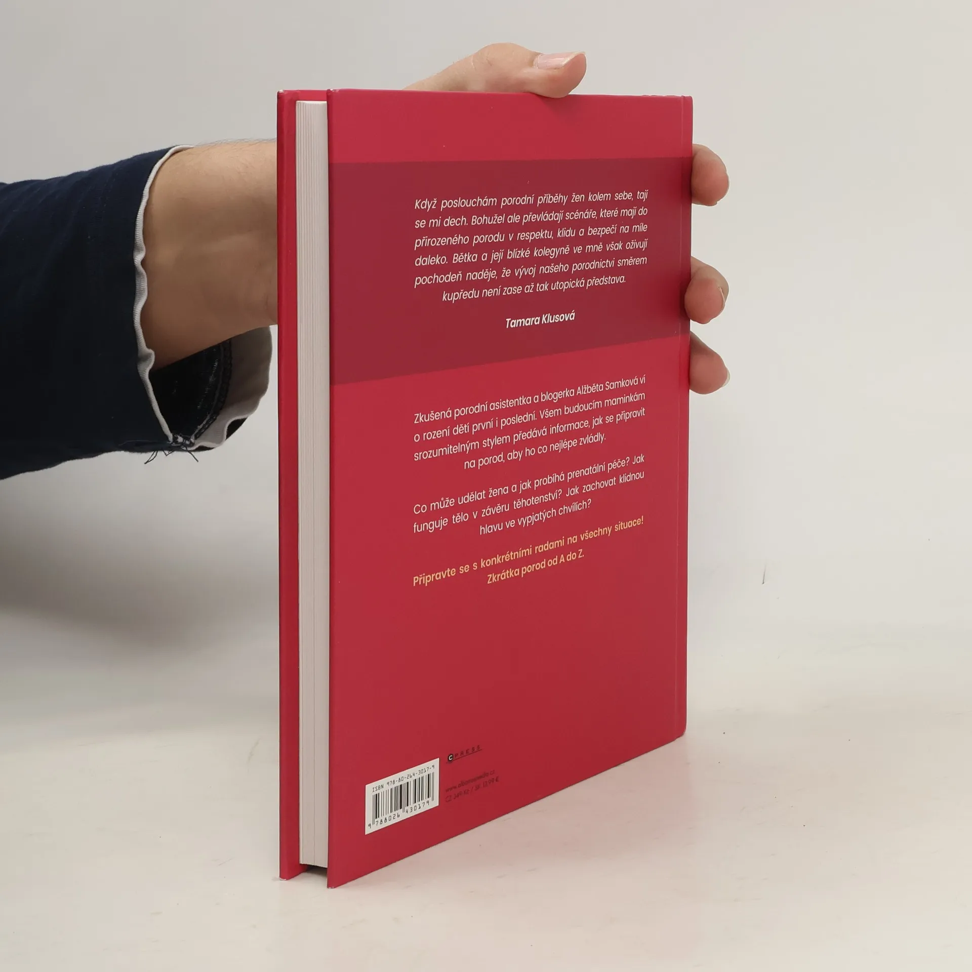 Zkušená porodní asistentka a blogerka Alžběta Samková ví o rození dětí první i poslední. Všem budoucím maminkám srozumitelným stylem předává informace, jak se připravit na porod, aby ho co nejlépe zvládly. Co může udělat žena a jak probíhá prenatální péče? Proč funguje tělo v těhotenství odlišně? Jak zachovat klidnou hlavu ve vypjatých chvílích? Připravte se s konkrétními radami na všechny situace! Zkrátka porod od A do Z.