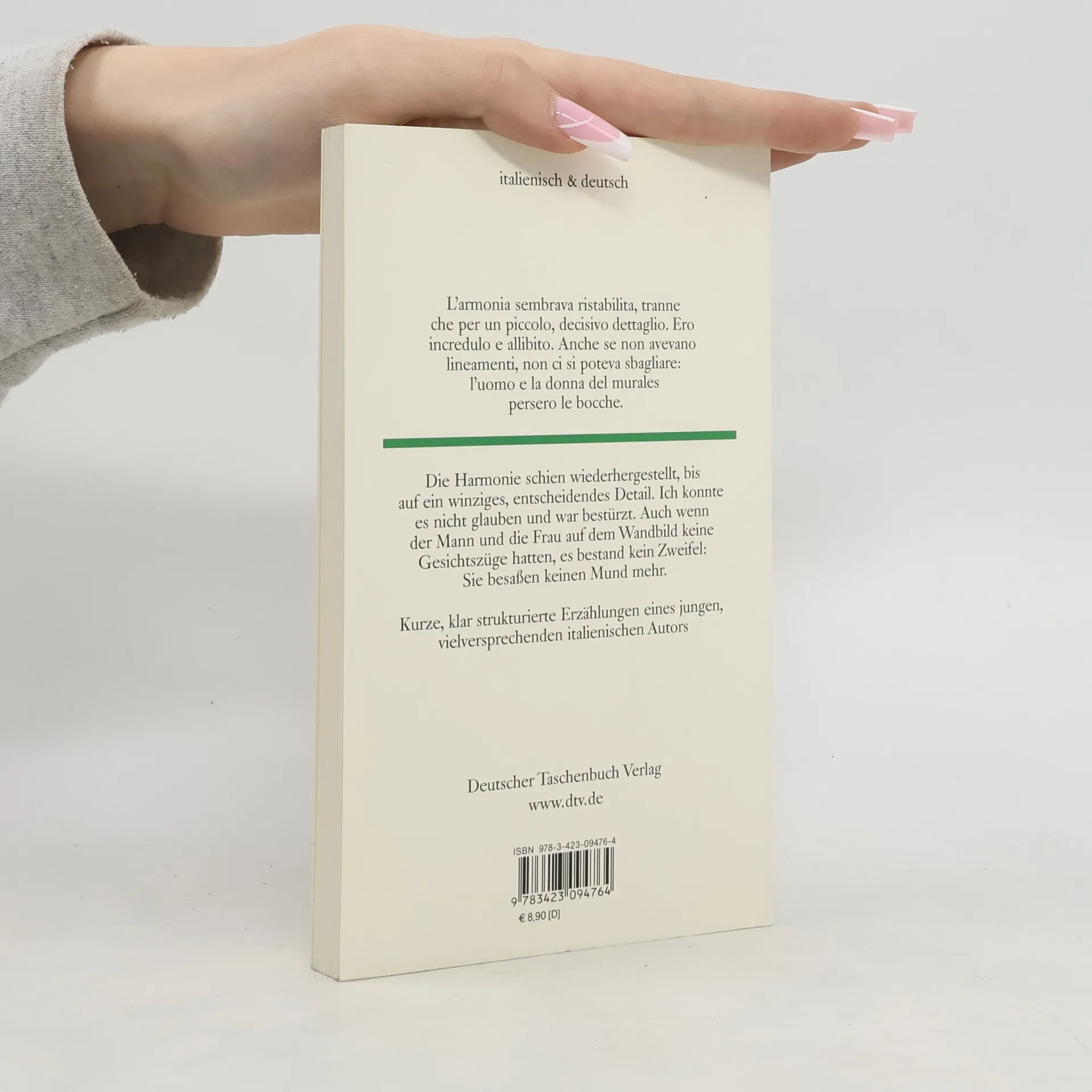 Ein rätselhaft bröckelndes Wandgemälde über dem Ehebett, ein unbekannter Schlüssel am Schlüsselbund der verstorbenen Ehefrau - Luca Ricci spürt dem geheimnisvollen Ineinanderfließen von Liebe und Hass nach. Um die kleinen und großen Zwischenfälle des Alltags breitet er eine subtil beobachtete Palette menschlicher Gefühle aus und führt seine Geschichten mit klarem Stil über kaum wahrnehmbare Verwicklungen zu einem bisweilen unerwarteten Ende. Luca Ricci gilt in Italien als einer der originellsten jungen Autoren der letzten Jahre. Texte für Könner