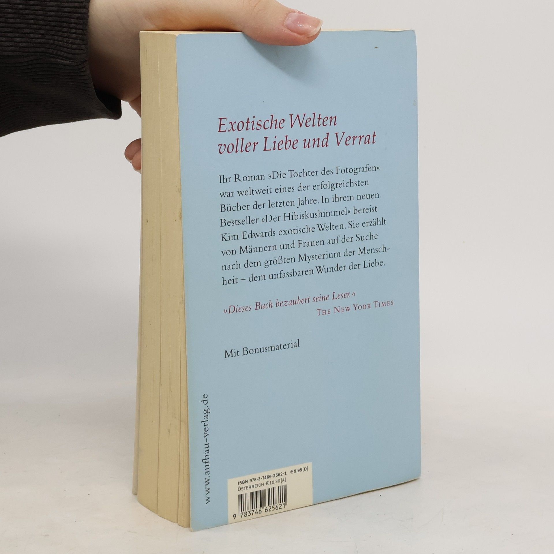Exotische Welten voller Liebe und Verrat Ihr Roman „Die Tochter des Fotografen“ war weltweit eines der erfolgreichsten Bücher der letzten Jahre. In ihrem neuen Bestseller „Der Hibiskushimmel“ bereist Kim Edwards exotische Welten; sie erzählt von Männern und Frauen auf der Suche nach dem größten Mysterium der Menschheit - dem unfassbaren Wunder der Liebe. „Faszinierend, exotisch, sehr raffiniert.“ Brigitte Mit Bonusmaterial Von der Autorin des Weltbestsellers: „Die Tochter des Fotografen“