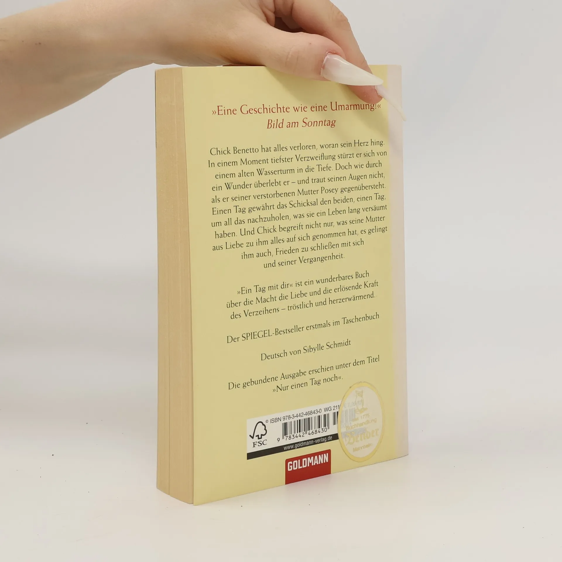 Chick Benetto hat alles verloren, woran sein Herz hing. In einem Moment tiefster Verzweiflung stürzt er sich von einem alten Wasserturm in die Tiefe. Doch wie durch ein Wunder überlebt er – und traut seinen Augen nicht, als er seiner verstorbenen Mutter Posey gegenübersteht. Einen Tag gewährt das Schicksal den beiden, einen Tag, um all das nachzuholen, was sie ein Leben lang versäumt haben. Und Chick begreift nicht nur, was seine Mutter aus Liebe zu ihm alles auf sich genommen hat, es gelingt ihm auch, Frieden zu schließen mit sich und seiner Vergangenheit.