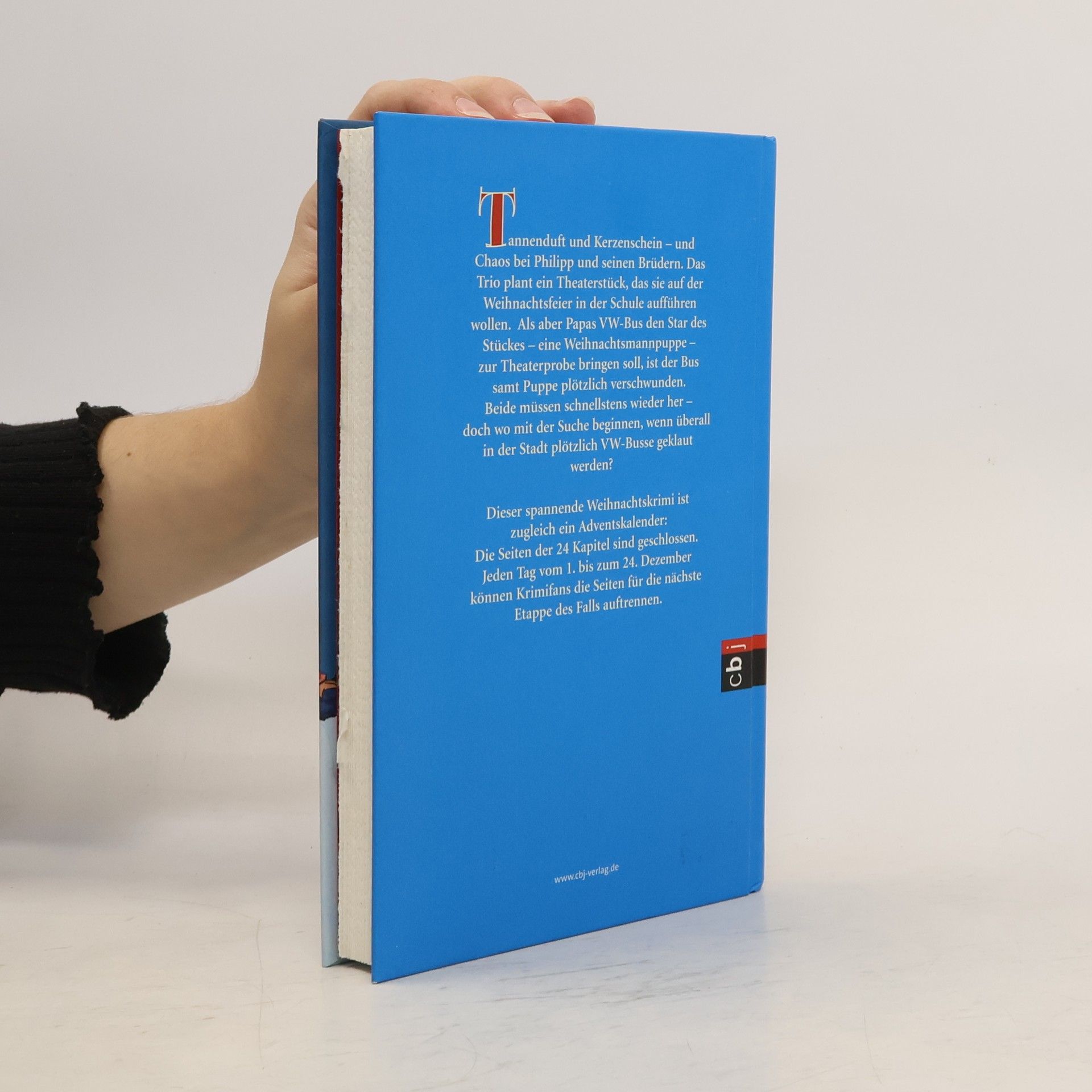 Die Weihnachtszeit wird spannend: Der neue Adventskalender-Krimi ist da! Tannenduft und Kerzenschein – und Chaos bei Philipp und seinen Brüdern. Das Trio plant eine Schultheateraufführung mit einer riesigen Weihnachtsmannpuppe. Als aber Papas VW-Bus den stummen Hauptdarsteller zur Theaterprobe bringen soll, sind Bus und Weihnachtsmann plötzlich verschwunden. Beide müssen schnellstens wieder her – ganz klar. Doch wo mit der Suche beginnen, wenn überall in der Stadt plötzlich VW-Busse geklaut werden? Jetzt heißt es: clever kombinieren! Ein 24 Kapitel starkes Krimiabenteuer mit perforierten Auftrenn-Seiten macht das Warten aufs Christkind so überraschend und aufregend wie nie.