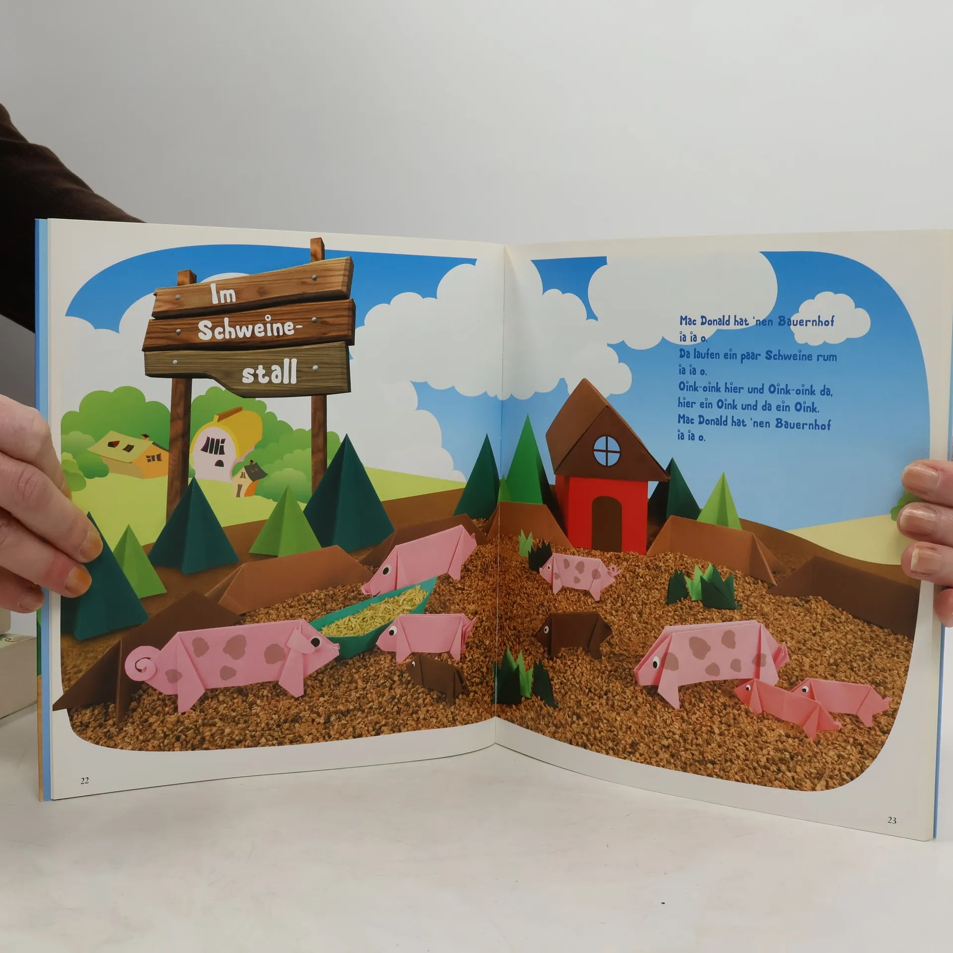 Hühner, Enten, Pferde und Schweine samt Zäunen, Bäumen und Häusern – altbekannte Klassiker bilden zusammen einen Bauernhof, der nicht nur zum einfachen und schnellen Falten, sondern vor allem zum Spielen einlädt.
