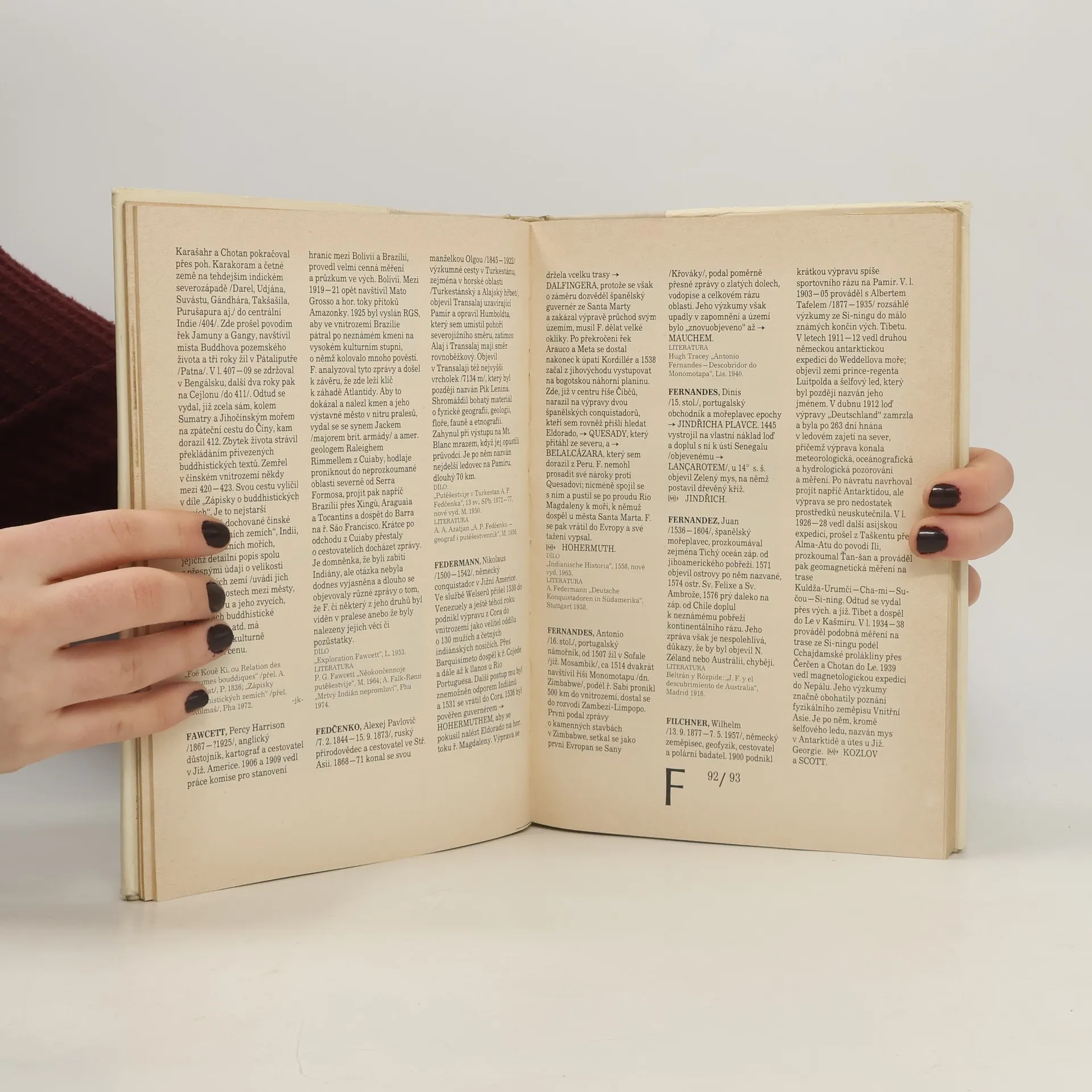 Biografický slovník přináší údaje o nejvýznamnějších evropských i mimoevropských objevitelích, mořeplavcích a cestovatelích, kteří přispěli k odstranění „bílých míst“ ze zemského povrchu.