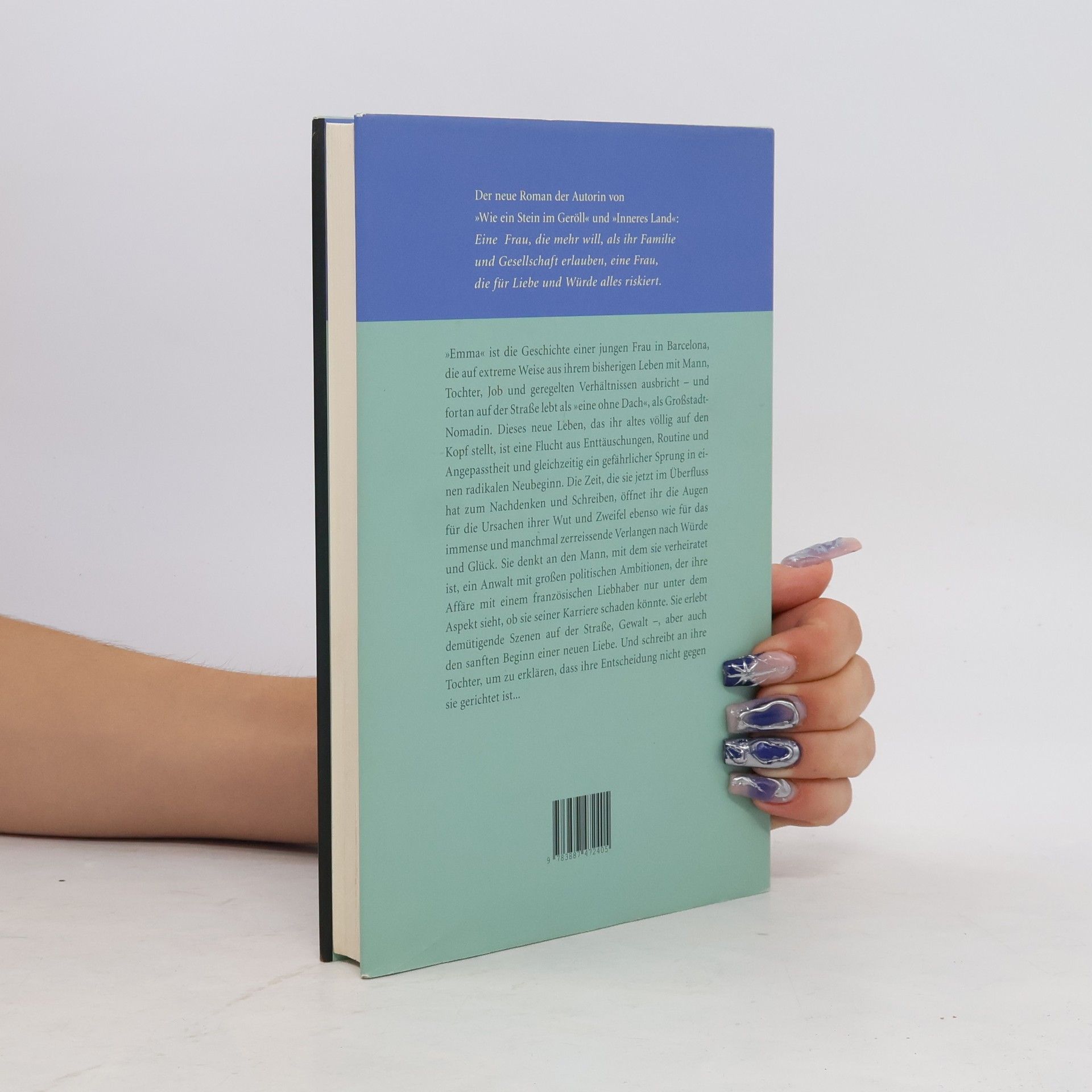 'Emma' ist die Geschichte einer modernen, jungen Frau in Barcelona, die auf extreme Weise aus ihrem bisherigen Leben mit Mann, Tochter, Job und geregelten Verhältnissen ausbricht – und fortan auf der Straße lebt als 'eine ohne Dach', als Großstadt-Nomadin, die mal in einem Park, mal in einer Häuserecke hockt oder schläft. Dieses neue Leben, das ihr altes völlig auf den Kopf stellt, ist eine Flucht aus Enttäuschungen, Routine und Angepasstheit und gleichzeitig ein gefährlicher Sprung in radikale Unabhängigkeit. Die Zeit, die sie jetzt im Überfluss hat zum Nachdenken und Schreiben, öffnet ihr die Augen für die Ursachen ihrer Wut und Zweifel ebenso wie für die immense und manchmal zerreissende Energie, die sie aus dem Verlangen nach Würde und Liebe zieht. Sie denkt an den Mann, mit dem sie verheiratet ist, ein Anwalt mit großen politischen Ambitionen, der sogar ihre Affäre mit einem französischen Liebhaber nur unter dem Aspekt sieht, ob sie seiner eigenen Karriere schaden könnte. Sie erlebt demütigende Szenen auf der Straße, Gewalt, brutale Jugendliche, ignorante Erwachsene. Und schreibt an ihre Tochter, um zu erklären, dass ihre Flucht nicht gegen sie gerichtet ist.
