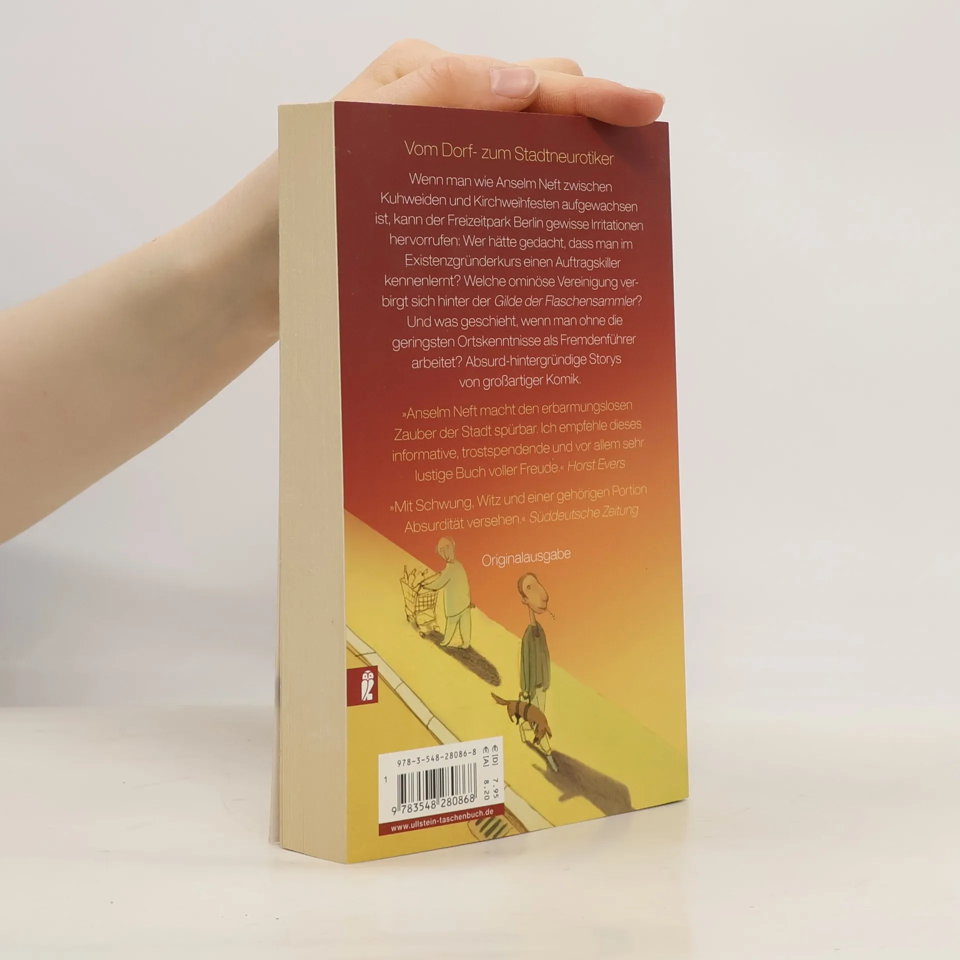 Wenn man wie Anselm Neft zwischen Kuhweiden und Kirchweihfesten aufgewachsen ist, kann der Freizeitpark Berlin gewisse Irritationen hervorrufen. Wer hätte gedacht, dass man auf einem Existenzgründerseminar einen Auftragskiller kennenlernen kann? Welche ominöse Vereinigung verbirgt sich hinter der Gilde der Flaschensammler? Und was geschieht, wenn man ohne die geringsten Ortskenntnisse als Fremdenführer arbeitet? Absurd-hintergründige Storys von großartiger Komik.