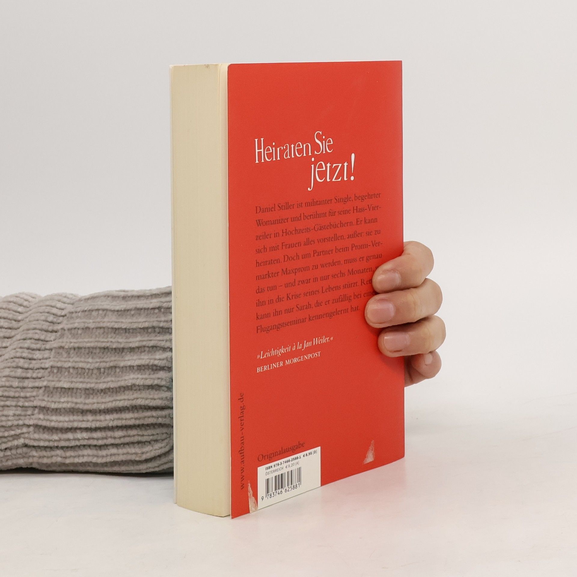 Heiraten Sie jetzt! Daniel Stiller ist militanter Single, gefragter Womanizer und berüchtigt für seine Hass-Vierzeiler in Hochzeits-Gästebüchern („Jetzt steht ihr hier in teurer Kleidung und denkt ihr seid total verknallt, in zwei Jahrn ist dann die Scheidung, auf Wiedersehn beim Rechtsanwalt“) und Abschieds-SMS an Freundinnen. Der Mittdreißiger kann sich mit Frauen alles vorstellen, nur nicht, sie zu heiraten. Auch wenn sich seine Mutter nichts lieber wünscht. Sein ausschweifender Lebenswandel erfährt erst eine radikale Wendung, als er bei Maxprom, einem Unternehmen, das sich auf die maximale Vermarktung von Prominenten spezialisiert hat, Partner werden soll. Denn dafür muss er heiraten, und zwar innerhalb der nächsten sechs Monate – so will es die gnadenlose Firmenchefin. Ein Schock für Stiller, und es wird alles nur noch schlimmer, als er von seinem engsten Vertrauten bei Maxprom erfährt, dass ihm keine andere Wahl bleibt, wenn er seinen Job behalten will. Es beginnt ein erbarmungsloses Rennen gegen die Zeit – natürlich mit überraschendem Ausgang. »Leichtigkeit à la Jan Weiler.« Berliner Morgenpost »Drei Geschichten in einer: eine klassische Lovestory, eine Skandalgeschichte und eine Mediensatire. Dieser kurzweilige Romanerstling zeichnet mit leichter Hand ein Bild der Generation Praktikum.« Hamburger Abendblatt