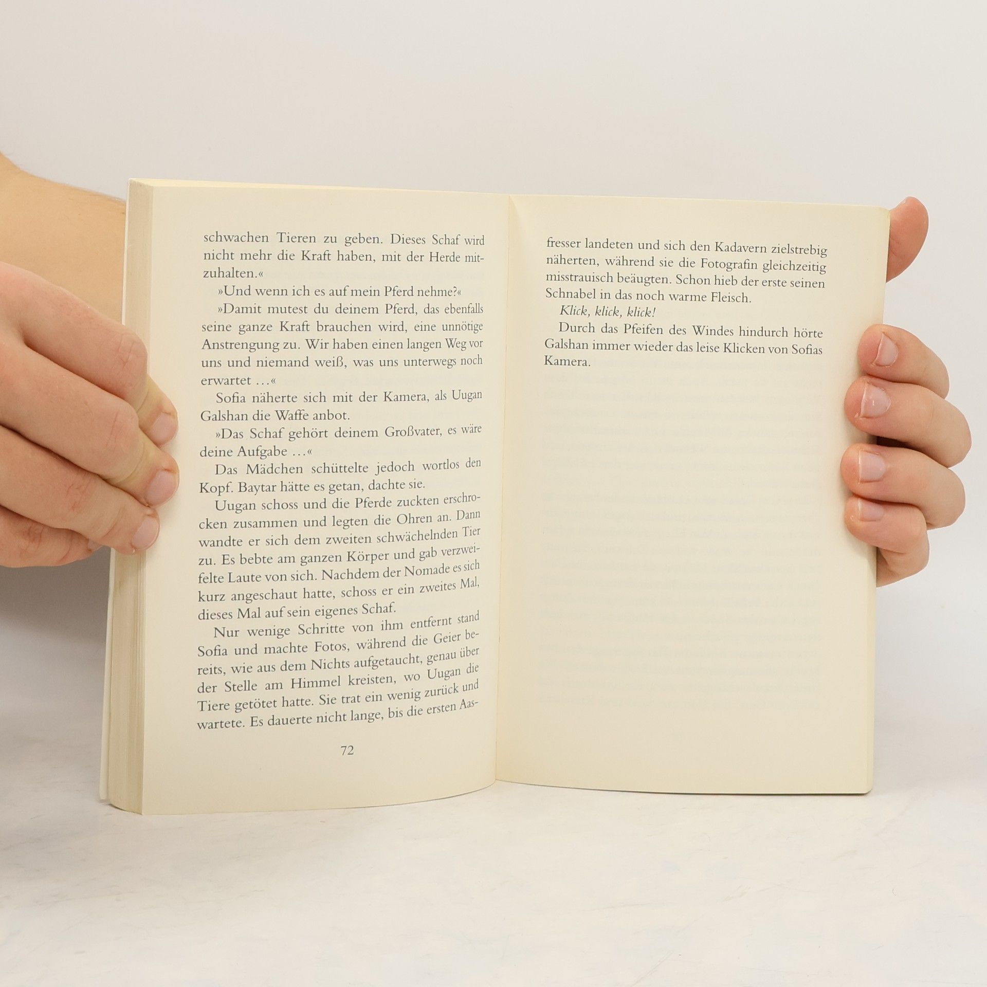 Eine packende Abenteuergeschichte aus der Mongolei Bedroht von einer großen Dürre begibt sich die 12-jährige Galshan mit ihren Tieren auf den beschwerlichen Weg in den Norden der Mongolei. Die Reise ist lang und beschwerlich – Wasserknappheit, stechende Hitze und Sandstürme fordern Galshans ganze nomadische Fähigkeiten. Hinzu kommt ihre Angst um die trächtige Stute, deren Fohlen jeden Tag geboren werden kann.