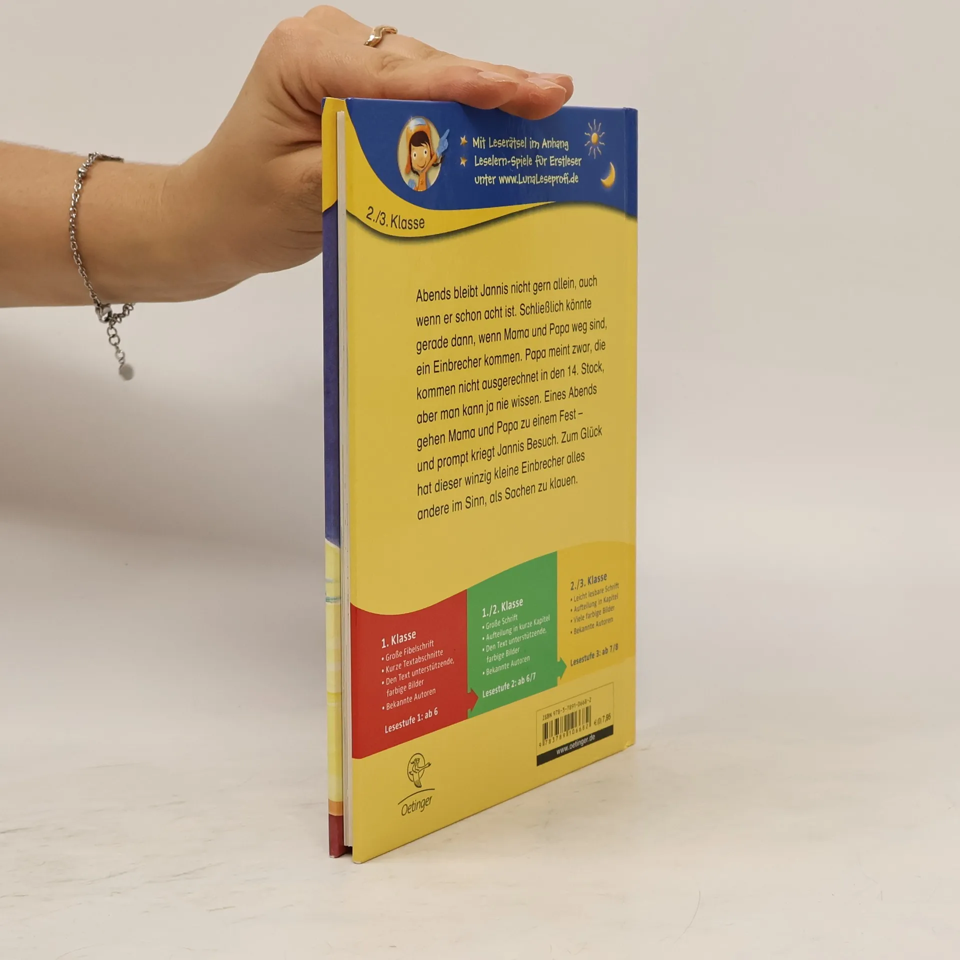 Heinzelmännchen-Alarm! Ein Erstlese-Kleinod von Kirsten Boie Eigentlich ist Jannis abends nicht gern allein. Schließlich könnte genau dann ein Einbrecher kommen! Doch heute sind Mama und Papa auf einem Fest. Und tatsächlich bekommt Jannis unerwarteten Besuch – aber der will nichts mitnehmen und gefährlich ist er auch nicht. Dieser Einbrecher ist ganz klein, sehr fleißig, überaus hungrig und sehr ordentlich! So schön sah es im Kinderzimmer von Jannis noch nie aus! Eine märchenhaft-witzige Alltagsgeschichte rund um Alleinsein, Aufräumen, Wahrheit und Lüge. „Sonne, Mond und Sterne“ für die 2./3. Klasse: Leicht lesbare Schrift Aufteilung in Kapitel Viele farbige Bilder Bekannte Autoren Mit Leserätseln im Anhang Gelistet bei Antolin.