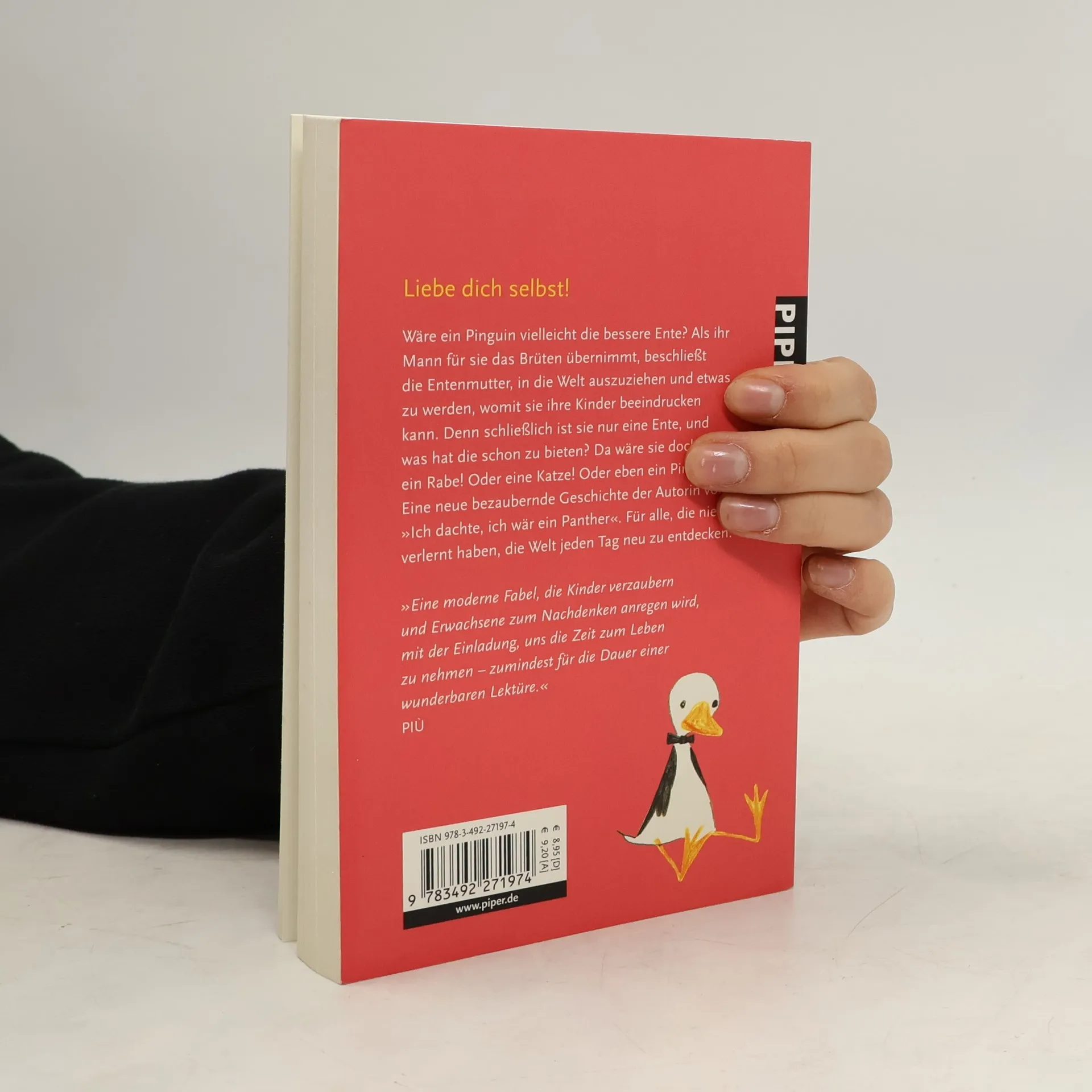 Wäre ein Pinguin vielleicht die bessere Ente? Als ihr Mann für sie das Brüten übernimmt, beschließt die Entenmutter, in die Welt auszuziehen und etwas zu werden, womit sie ihre Kinder beeindrucken kann. Denn schließlich ist sie nur eine Ente, und was hat die schon zu bieten? Da wäre sie doch lieber ein Rabe! Oder eine Katze! Ober eben ein Pinguin! Eine neue bezaubernde Geschichte der Autorin von 'Ich dachte, ich wär ein Panther'. Für alle, die nie verlernt haben, die Welt jeden Tag neu zu entdecken.
