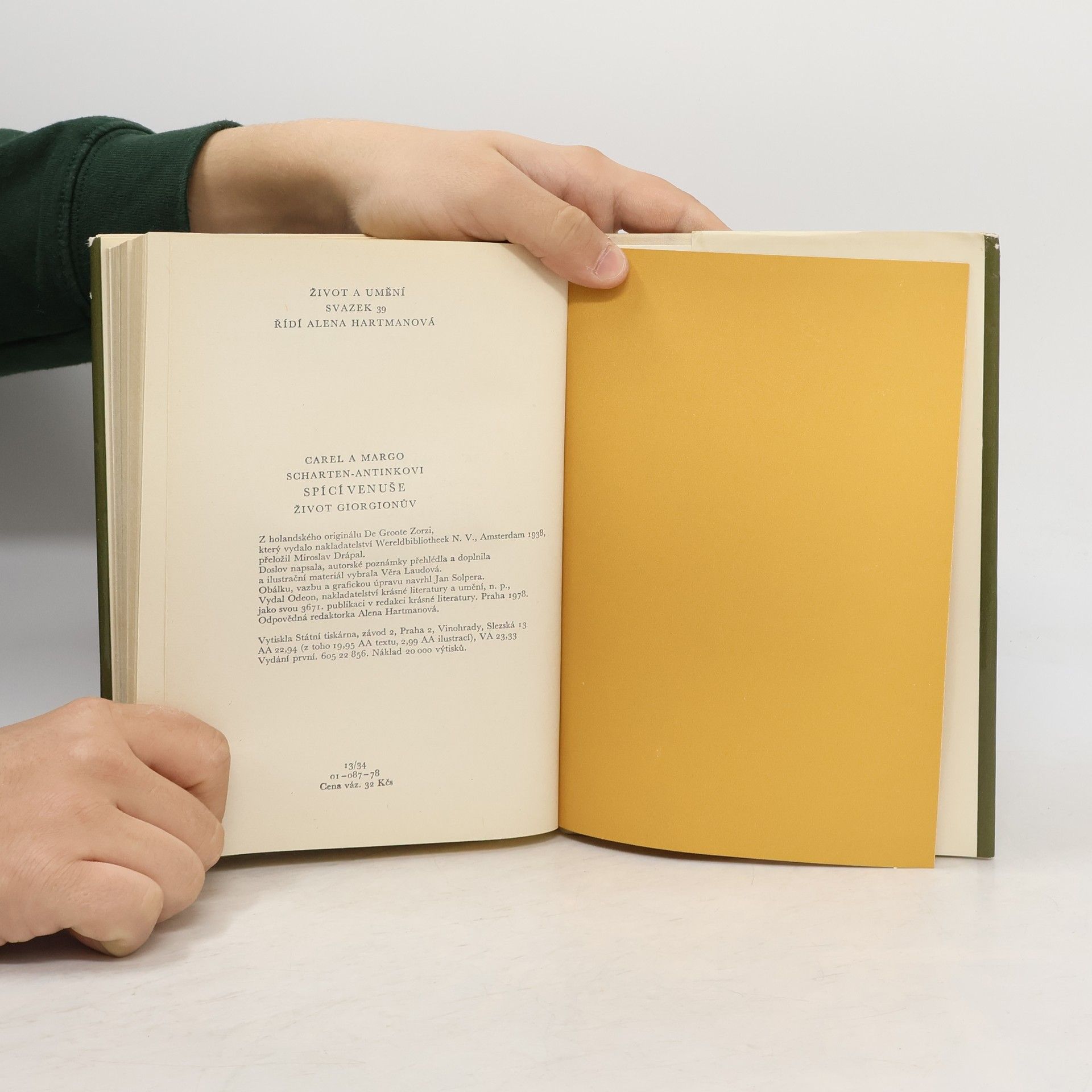 Citlivé a barvité zobrazení Benátek kolem roku 1500, jejich architektury, uměleckého života, způsobu života různých společenských vrstev, posloužilo autorům jako pozadí pro rozsáhlou fresku věnovanou významnému umělci benátského malířství zvanému Giorgione. Ilustrace – reprodukce Giorgionových děl. Doslov napsala a ilustrační materiál vybrala Věra Laudová. Vydání první.
