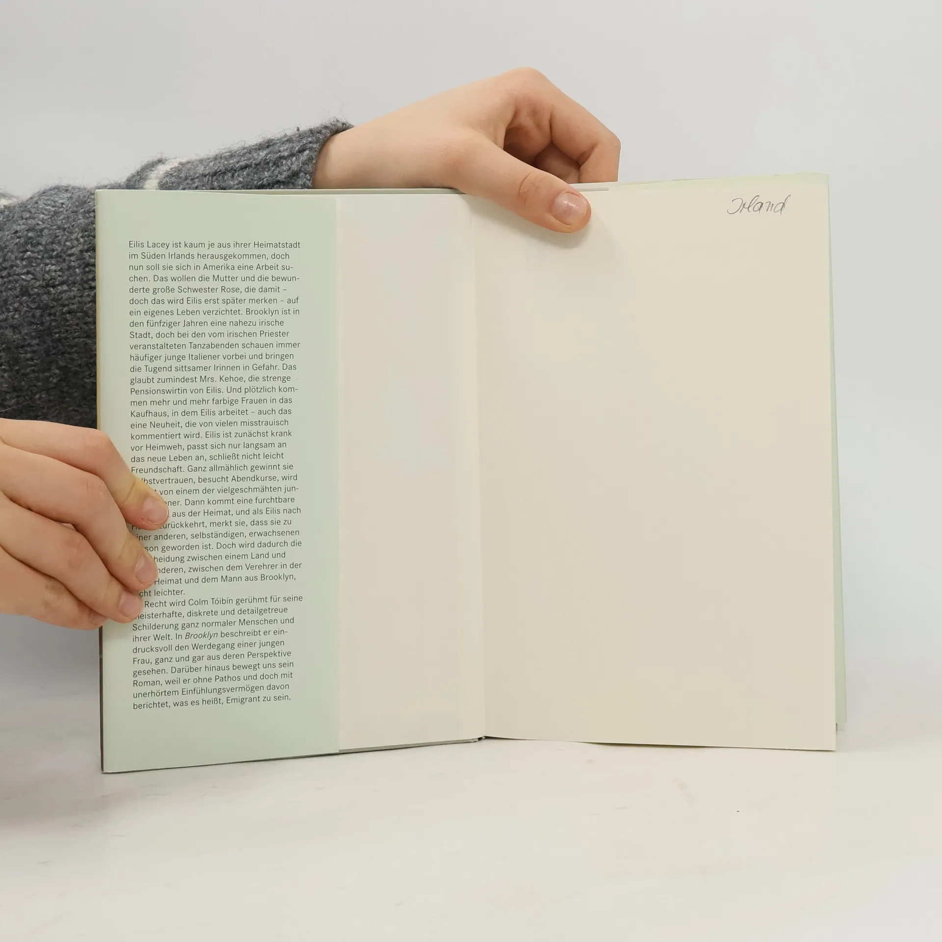 Die junge Irin Eilis Lacey wandert um 1950 nach Amerika aus, um in Brooklyn eine neue Arbeit zu finden. Doch sie passt sich nur langsam an das neue Leben an, schließt nicht leicht Freundschaft. Ganz allmählich gewinnt sie Selbstvertrauen und merkt, dass sie zu einer selbständigen, erwachsenen Person geworden ist. Das macht ihr die Entscheidung zwischen Irland und Amerika, zwischen dem einen und dem anderen Mann, nicht leichter. Der preisgekrönte Autor Colm Tóibín beschreibt eindrucksvoll ein klassisches Schicksal einer Emigration, den Werdegang einer ganz normalen Frau - ganz und gar aus ihrer Perspektive gesehen.