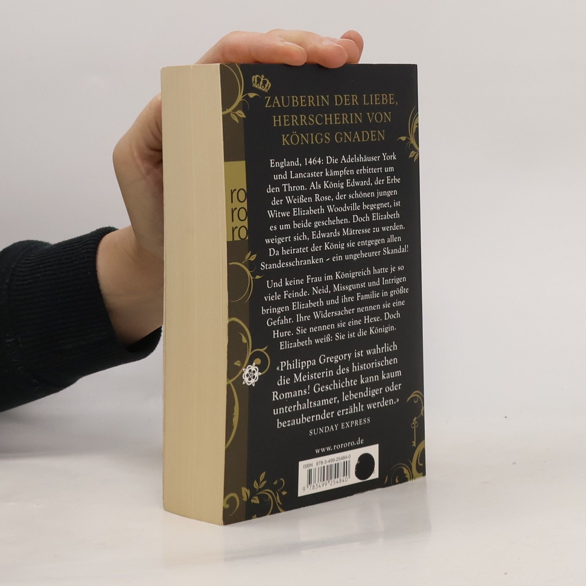 England, 1464: Die Adelshäuser York und Lancaster kämpfen erbittert um den Thron. Als König Edward, der Erbe der Weißen Rose, der schönen jungen Witwe Elizabeth Woodville begegnet, ist es um beide geschehen. Doch Elizabeth weigert sich, Edwards Mätresse zu werden. Da heiratet der König sie entgegen allen Standesschranken – ein ungeheurer Skandal! Und keine Frau im Königreich hatte je so viele Feinde. Neid, Missgunst und Intrigen bringen Elizabeth und ihre Familie in größte Gefahr. Ihre Widersacher nennen sie eine Hure. Sie nennen sie eine Hexe. Doch Elizabeth weiß: Sie ist die Königin.
