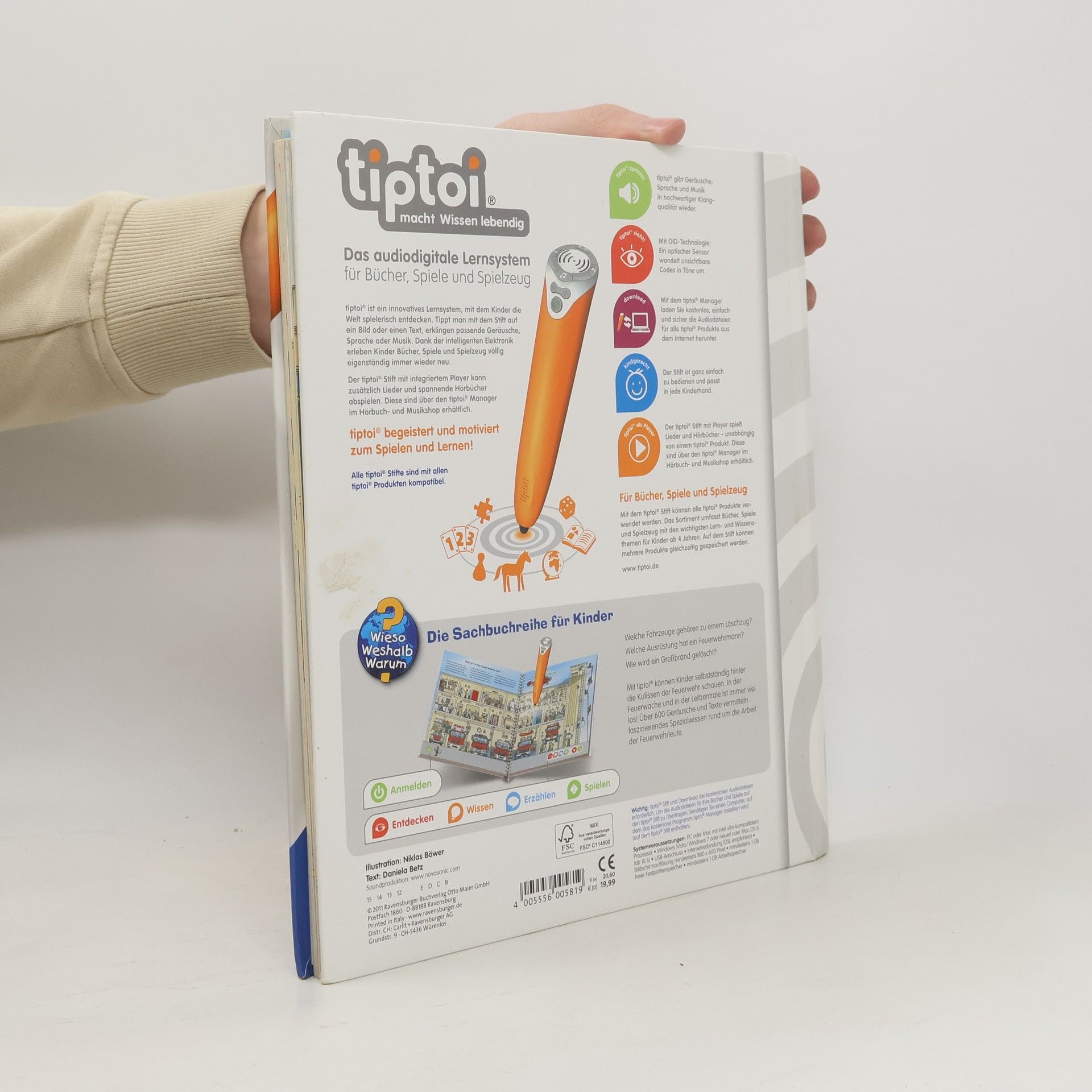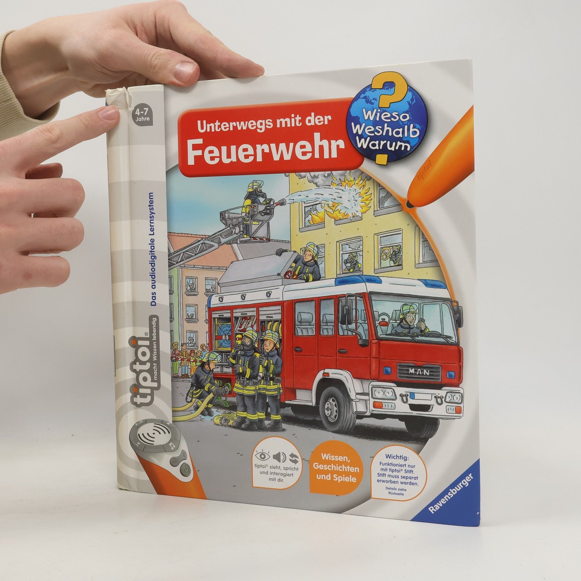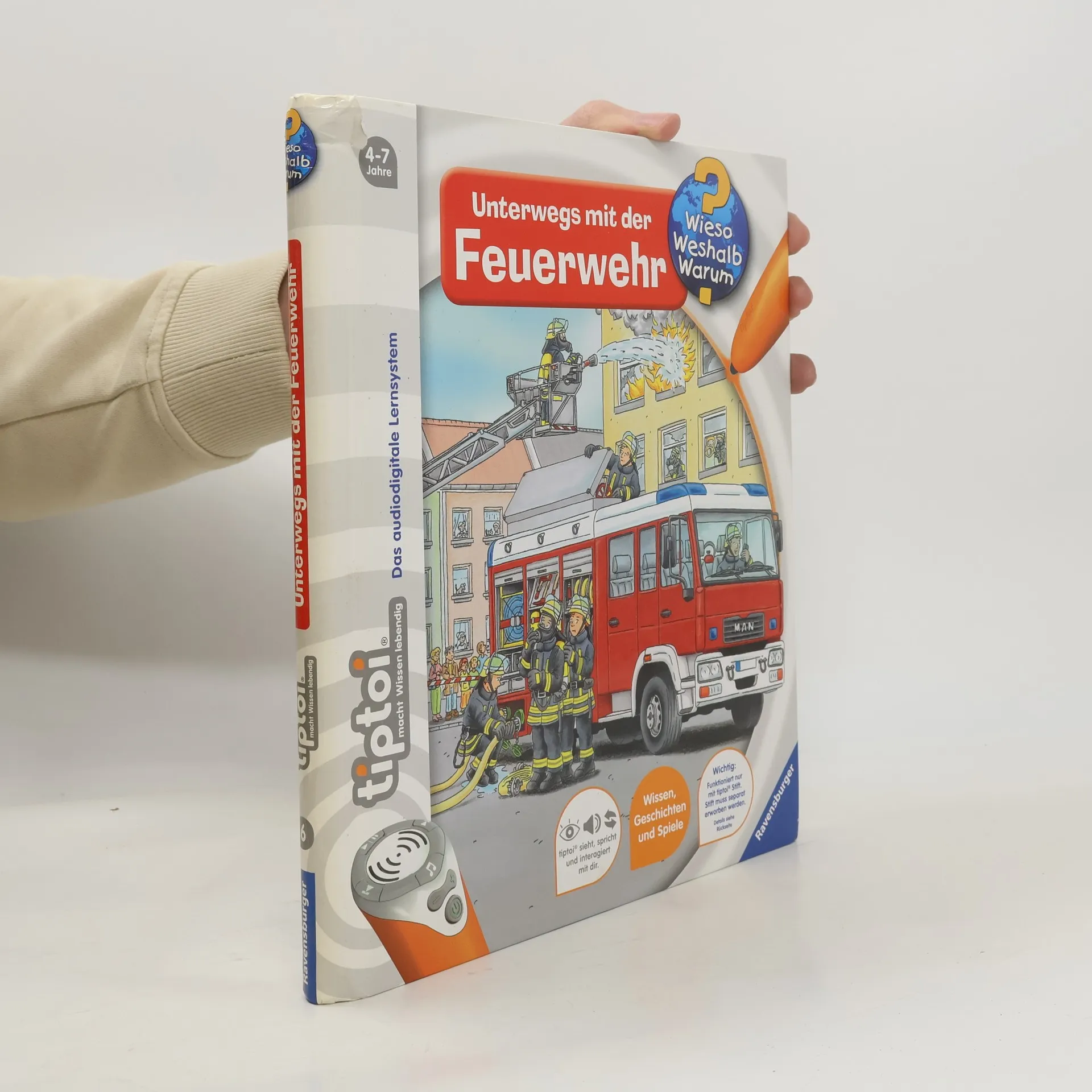 Mit tiptoi wird das faszinierende Thema Feuerwehr zu einem besonderen und interaktiven Spektakel! Welche Fahrzeuge gehören zu einem Löschzug? Welche Ausrüstung braucht ein Feuerwehrmann? Wie und wann ruft man selbst die Feuerwehr? Mit diesem Buch können Kinder selbstständig hinter die Kulissen der Feuerwehr schauen. Los geht es in der Feuerwache und der Leitstelle, danach rückt die Feuerwehr aus der Fahrzeughalle zu verschiedenen Bränden aus. Ob Hausbrand, Großbrand oder Flugzeugbrand: Tolle Bilder und spannende Geräusche vermitteln interessantes Wissen über die Arbeit der Feuerwehr. Was macht der Traktor auf dem Feld? Wann kommt die Feuerwehr? Wie groß wird ein Pony? Die interaktive Sachbuchreihe tiptoi Wieso? Weshalb? Warum? beantwortet wichtige Kinderfragen auf Augenhöhe. Auf den liebevoll illustrierten Seiten tauchen die Kinder in eine Welt ein, die durch zahlreiche authentische Geräusche lebendig wird. Das Sachwissen wird altersgerecht erklärt und ist fachlich geprüft. Die Kinder können sich dank der einfachen und intuitiven Nutzung mit dem tiptoi-Stift das Wissen selbst erschließen. Sie lernen, Zusammenhänge zu begreifen und erfahren spannende Informationen über ihren Alltag und ihre Umwelt. Tolle Geschichten, Lieder und unterhaltsame Spiele laden dabei immer wieder zum selbstständigen Entdecken und Erforschen ein. tiptoi-Stift nicht enthalten. Muss separat erworben werden.