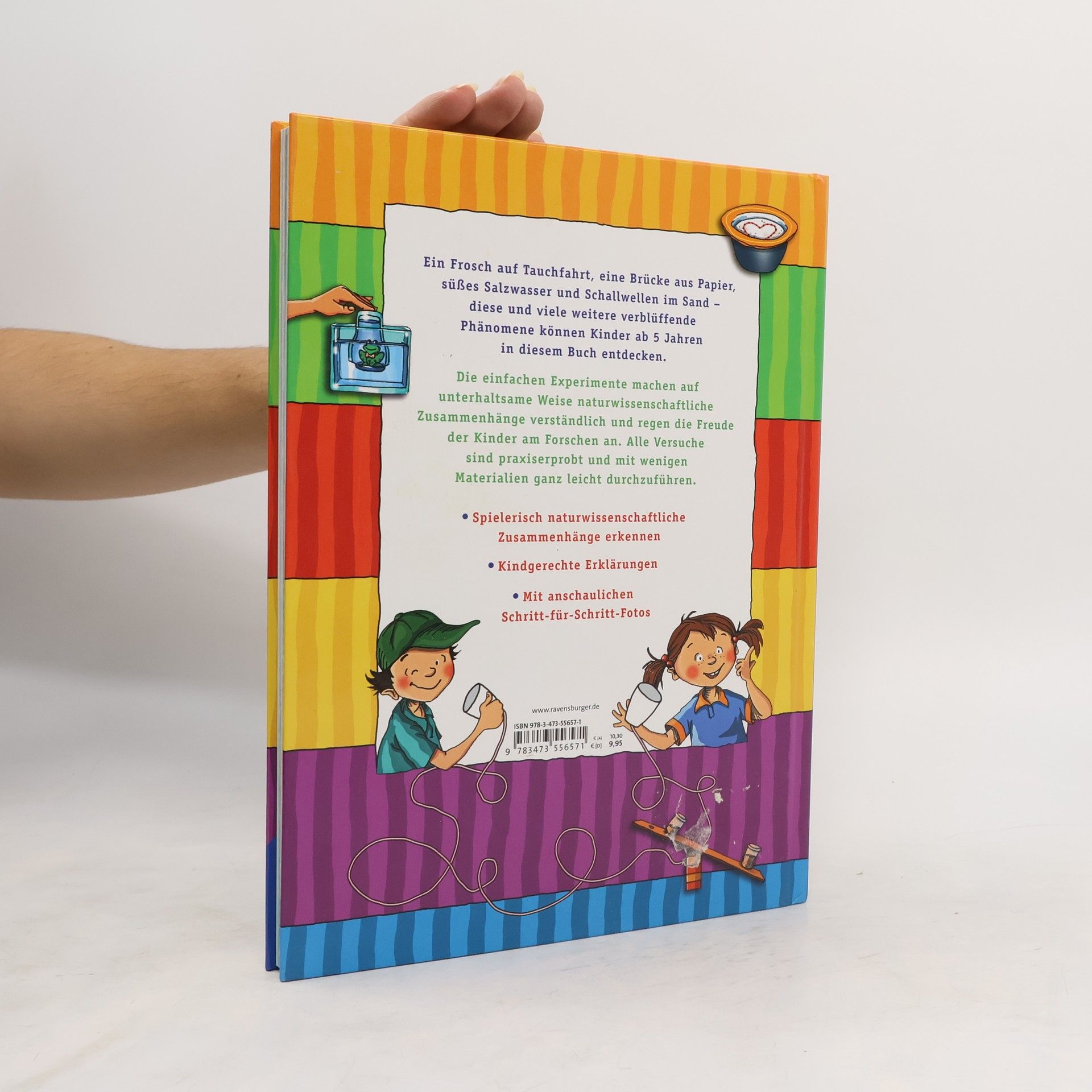 Ein Frosch auf Tauchfahrt, eine Brücke aus Papier, süßes Salzwasser und Schallwellen im Sand - diesen und vielen weiteren verblüffenden Phänomenen können Kinder ab 5 Jahren mit diesem Buch auf den Grund gehen. Die einfachen Experimente machen auf unterhaltsame Weise naturwissenschaftliche Zusammenhänge verständlich und regen den kindlichen Forscherdrang an.